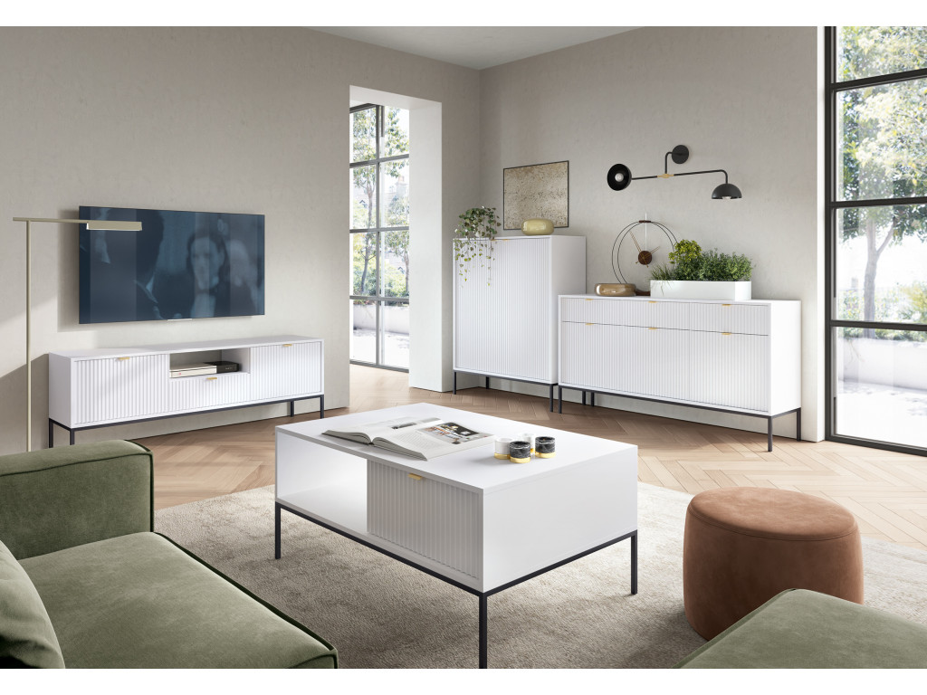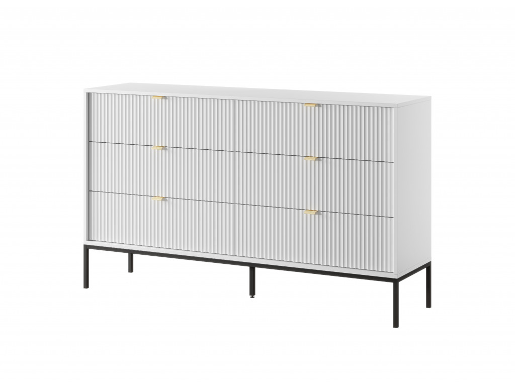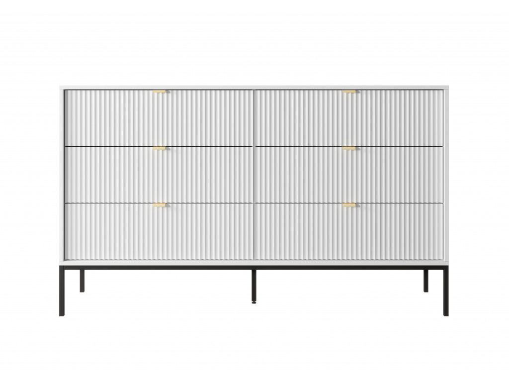 Ak hľadáte originálnu zásuvkovú komodu, ste na správnom mieste. Biela komoda so zásuvkami s drážkovanými čelami Novas je voľbou do každej modernej obývačky. Komoda disponuje 6 zásuvkami.