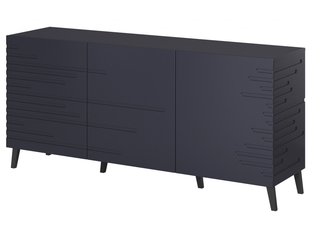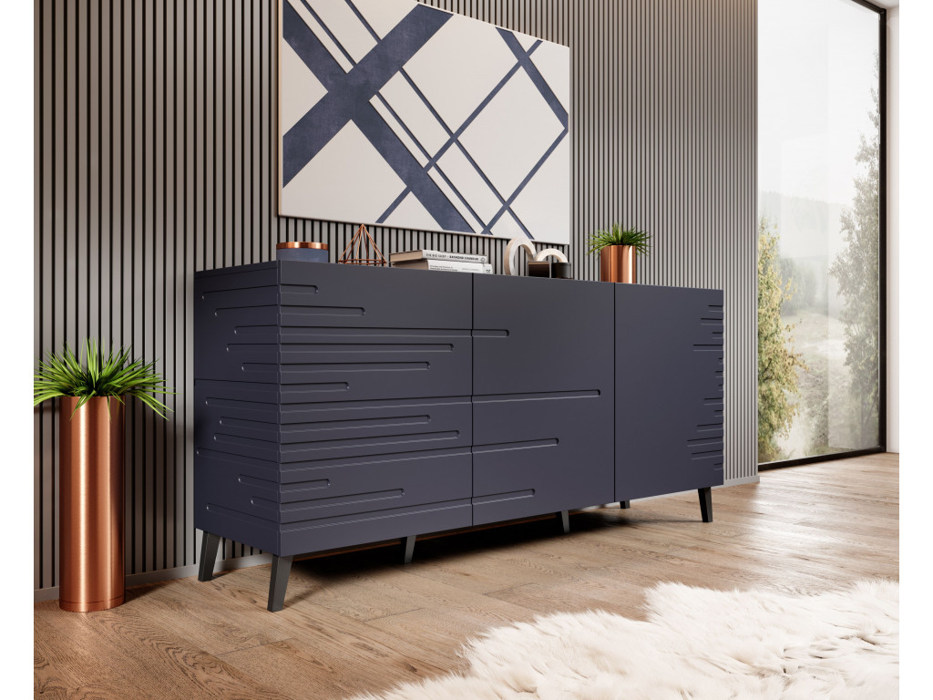 Komoda Nova v elegantnej modrej farbe je dokonalým kusom nábytku, ktorý dodá vašej izbe úplne nový rozmer. Jej dokonalá povrchová úprava na čelách vyniká nad ostatným nábytkom Netradičné horizontálne vrúbkovanie po stranách komody zaujme už na prvý pohľad. Komoda si určite nájde svoje miesto v obývačke aj v spálni.