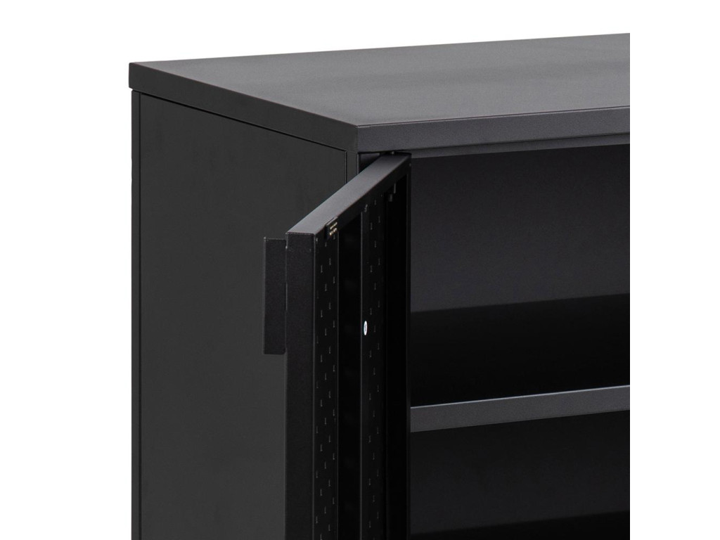 Newton sideboard, top, frame, 2 doors and base matt black rough powder coated steel, with metal mesh, 82x40x80 cm