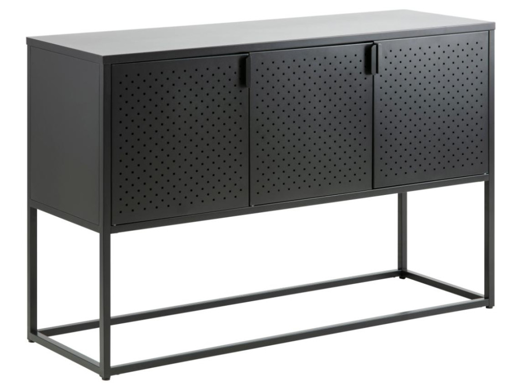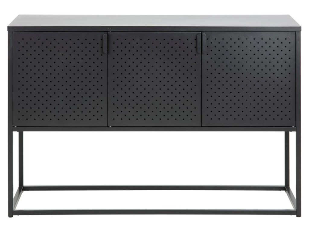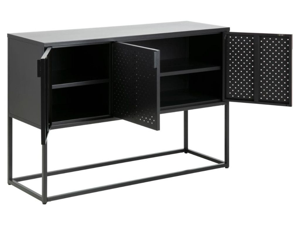 Newton sideboard, top, frame, 3 doors and base matt black rough powder coated steel, with metal mesh, 120x40x80 cm