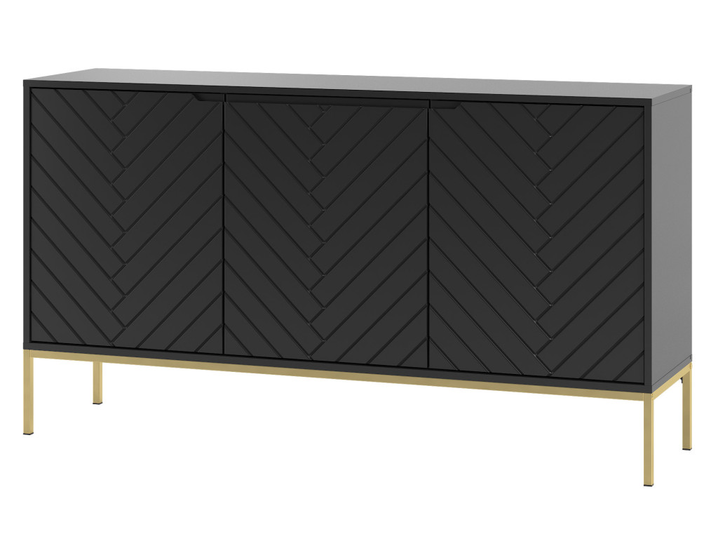 Komoda Aspen 03 v matnej čiernej farbe prináša interiéru sofistikovaný a moderný vzhľad. Frézované čelá s unikátnym stromčekovým vzorom a minimalistický dizajn bez úchytiek zdôrazňujú čisté línie nábytku. S tromi otváracími dvierkami ponúka dostatok plnohodnotného úložného priestoru a zaujme svojou eleganciou aj praktickosťou.