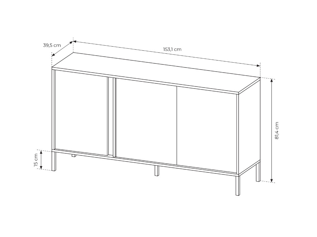 Dizajnová komoda Dast vyniká príjemnou béžovou farbou a stabilnými kovovými nožičkami čiernej farby. Disponuje 3 samostatnými dvierkami, za ktorými sa ukrývajú priestranné police, funkčne rozdeľujúce priestor. Okrem toho môžete využiť aj vrchnú dosku komody Dast ako odkladací priestor na rôzne maličkosti, ako sú fotografie, kvety alebo iné dekorácie.