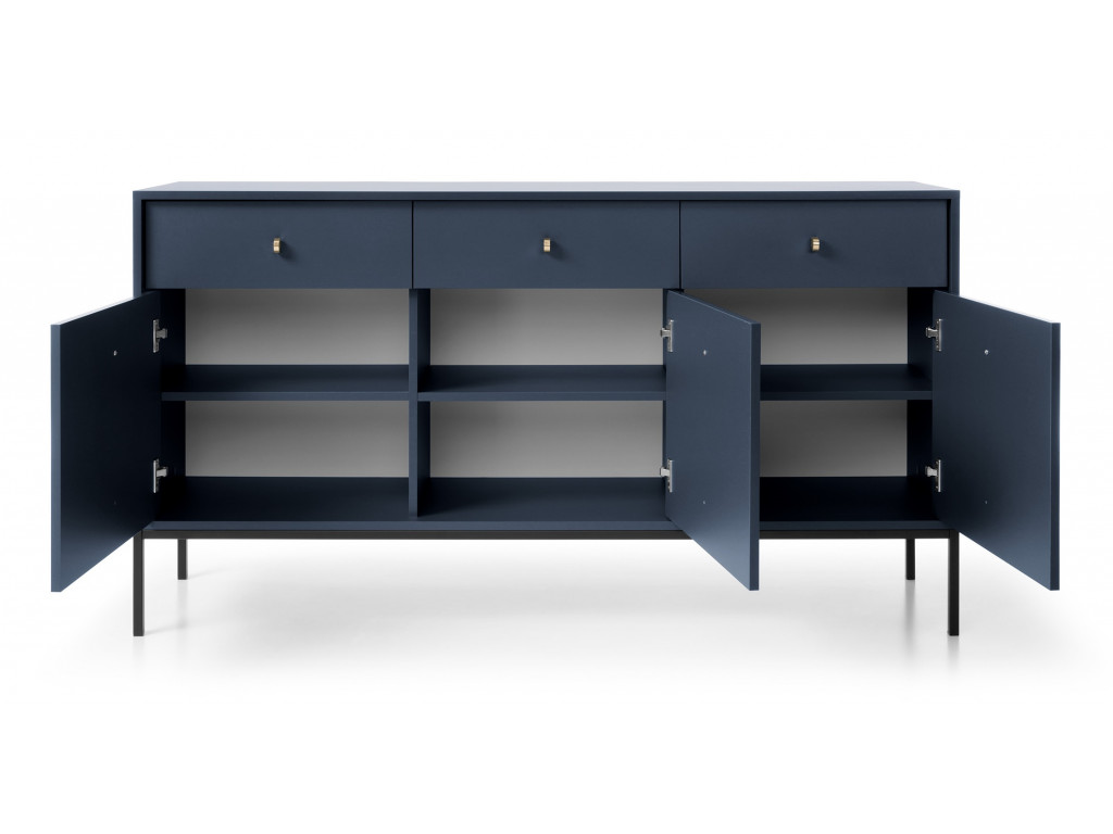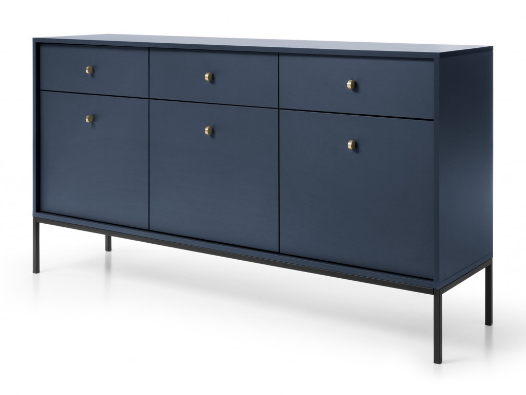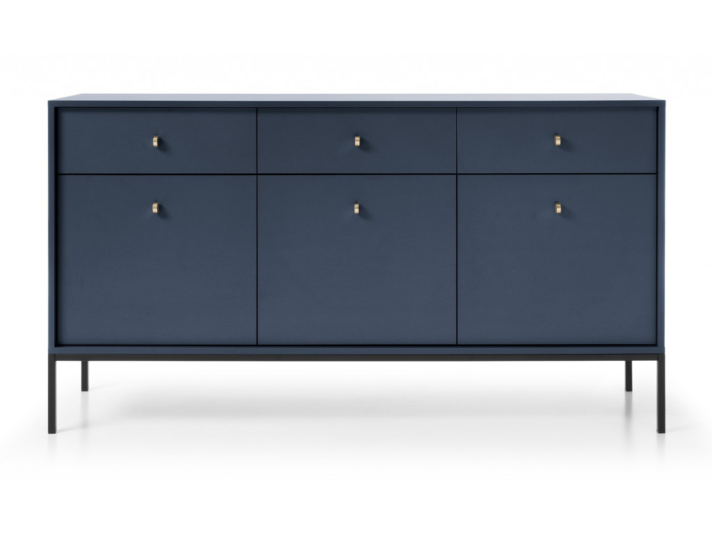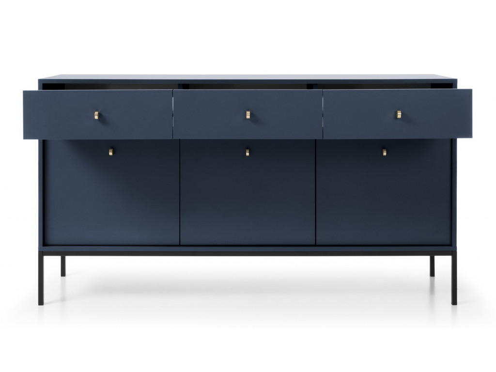 Nezvyčajná modrá navy farba navodzuje originálnu a harmonickú atmosféru. Komoda ponúka dostatok funkčného úložného priestoru na všetky doplnky, dokumenty alebo oblečenie. Priestranné police a tri hlboké zásuvky umožnia udržiavať obývačku upratanú a usporiadanú.