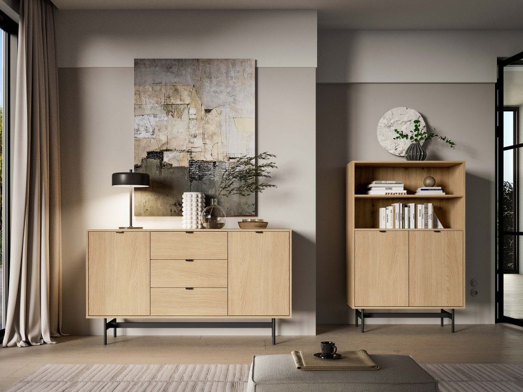 Kolekcia Reynos predstavuje moderný nábytok, ktorý spája minimalistický dizajn s vysokou funkčnosťou. Kombinácia svetlého dekoru duba mavelie a čiernych kovových prvkov vytvára nadčasový vzhľad s jemným industriálnym akcentom, ktorý ľahko zapadne do obývačky aj spálne. Vizuálna ľahkosť, čisté línie a premyslené detaily robia z tejto kolekcie atraktívne riešenie pre súčasné bývanie.