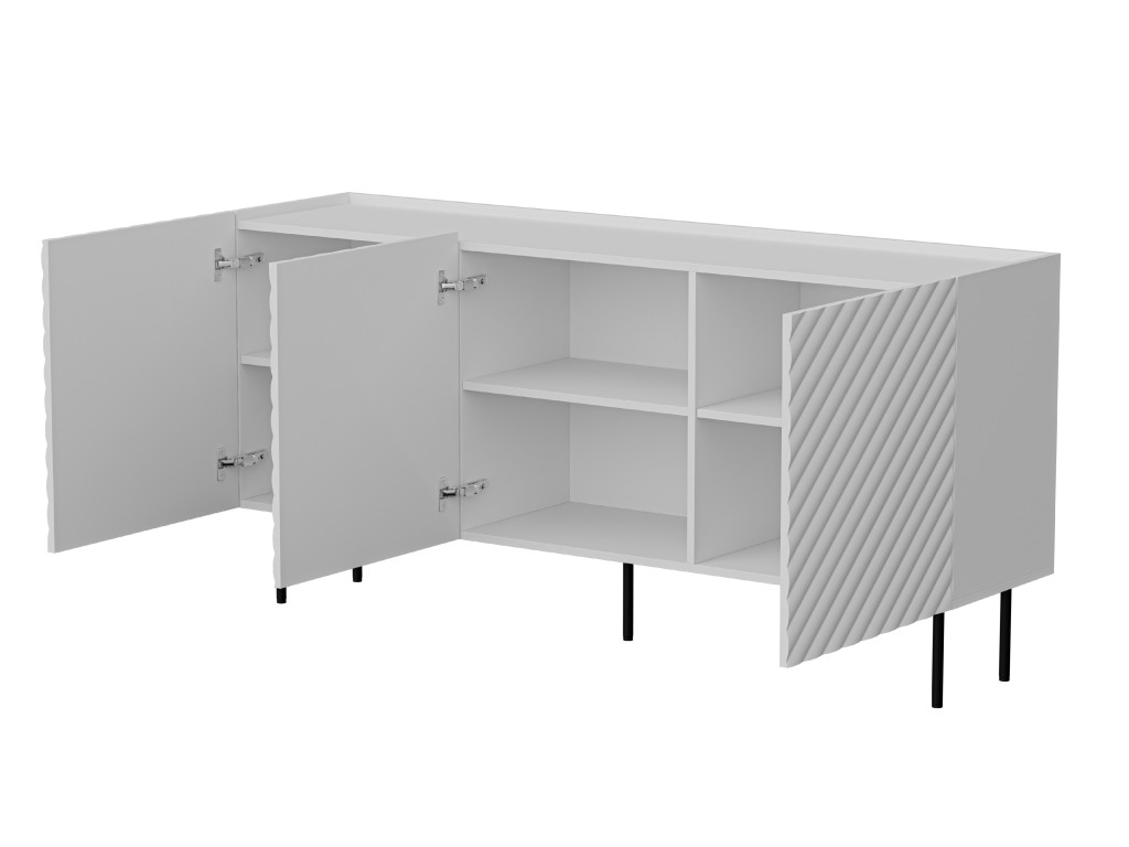 Kompaktná biela komoda Lucia 165 je ideálna pre menšie priestory, kde chcete zachovať pocit svetla a vzdušnosti. Troje dvierok ukrývajú dostatok priestoru na každodenné veci. Jemné diagonálne frézovanie čiel v bielej farbe vynikne elegantne a nenápadne. Skvelá voľba do spálne, chodby alebo hosťovskej izby.