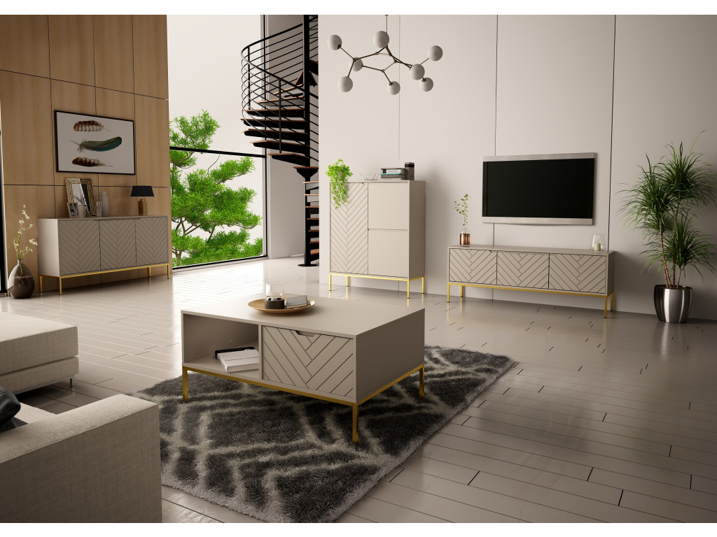 Vysoká komoda Aspen 07 z kolekcie Aspen v matnej béžovej farbe prináša do vášho interiéru teplý a moderný vzhľad. Elegantné frézované čelá s jemným stromčekovým vzorom a minimalistický štvorcový tvar dodávajú komode štýlovú jednoduchosť. Tri dvierka poskytujú praktický a pohodlný úložný priestor pre každodenné potreby.