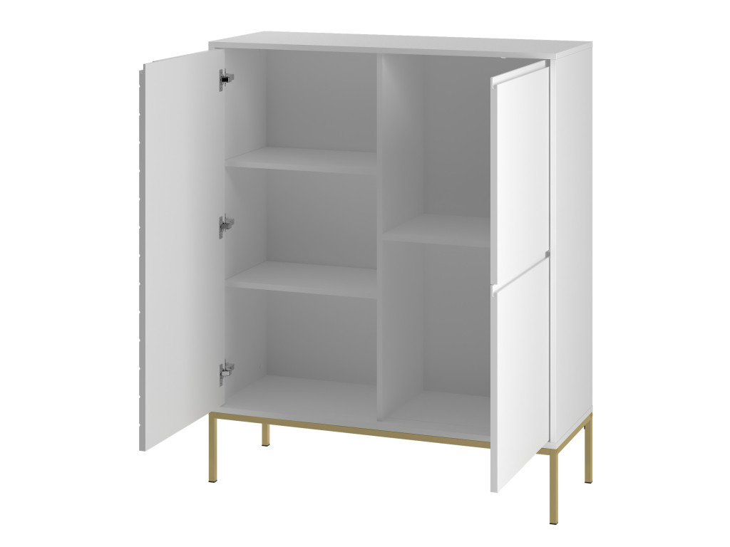 Vysoká komoda Aspen 07 z kolekcie Aspen v matnej bielej farbe je ideálnym riešením pre moderné interiéry, ktoré kladú dôraz na praktickosť a čistý dizajn. Štvorcový tvar a elegantné frézované čelá s jemným stromčekovým vzorom dodávajú komode štýlový vzhľad, zatiaľ čo tri dvierka poskytujú dostatok úložného priestoru.