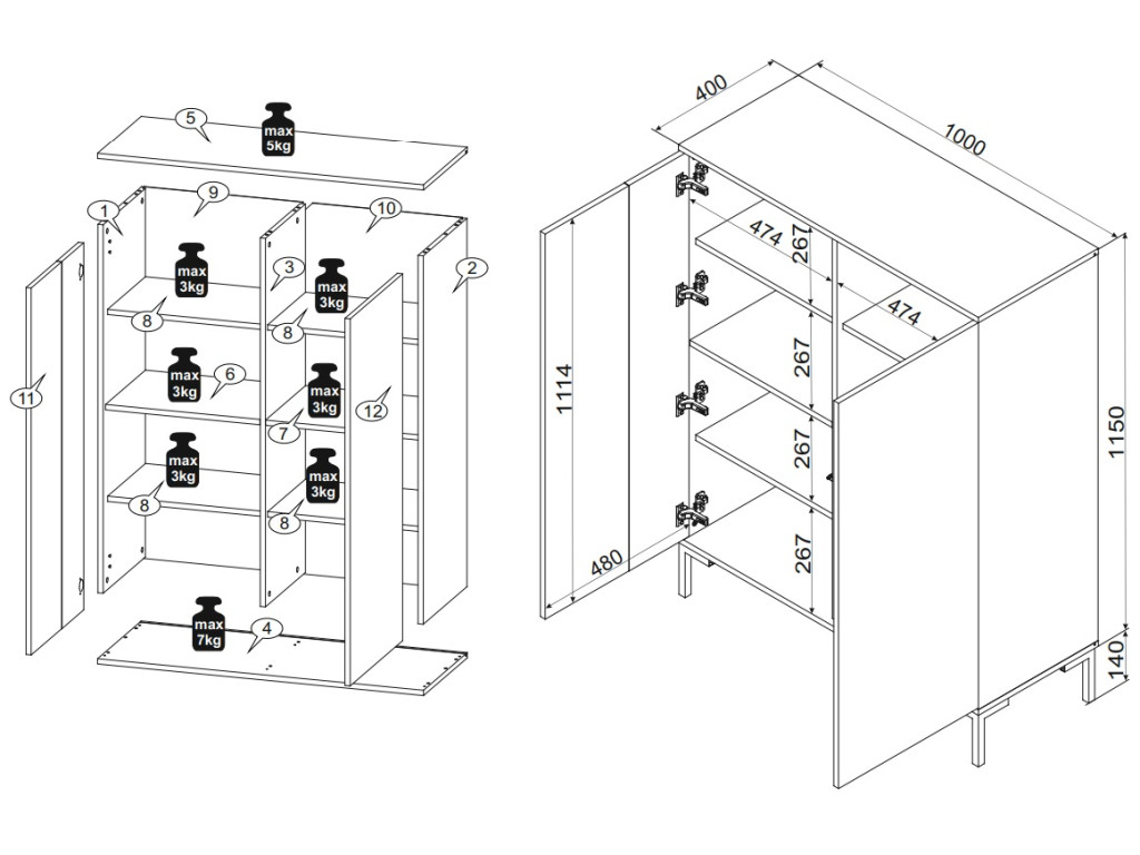 Korpus aj čelá sú vyrobené z kvalitnej 16 mm drevotriesky, zatiaľ čo čierna vložka je z MDF dosky s fóliovaným povrchom, ktorý zvyšuje jej odolnosť. Kolekcia Merci nie je len vizuálne príťažlivá, ale aj veľmi praktická – systém PUSH TO OPEN nahrádza rukoväte, čo zabezpečuje čisté línie a jednoduchosť používania. Tento dizajn spája estetický dojem s funkčnosťou, čím poskytuje maximálne pohodlie a využitie v modernom priestore, navyše vnáša do vášho domova atraktívnosť, a prispôsobuje sa akémukoľvek prostrediu.
