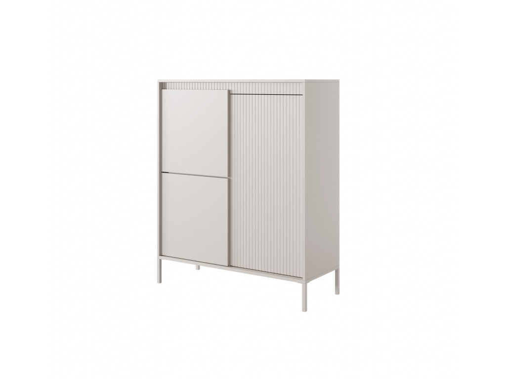 Komoda je vhodná nielen do obývačky, ale napríklad aj do chodby, jedálne či spálne. Komode dodáva osobitosť vertikálne frézovanie. Dizajnová komoda Senso stojí na vysokých kovových nožičkách rovnakej farby.