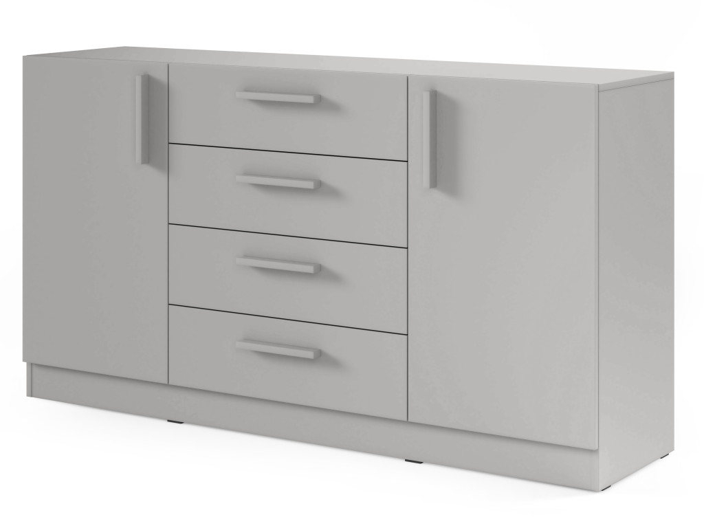 Komoda Braga BRK1 v modernom sivom prevedení je praktickým doplnkom do spálne, predsiene či šatníka. Bočné časti s dvierkami poskytujú dostatok priestoru na väčšie veci, zatiaľ čo štyri stredové zásuvky s plným výsuvom umožňujú prehľadné uloženie menších predmetov. Jednoduchý dizajn sa hodí do moderných aj nadčasových interiérov.