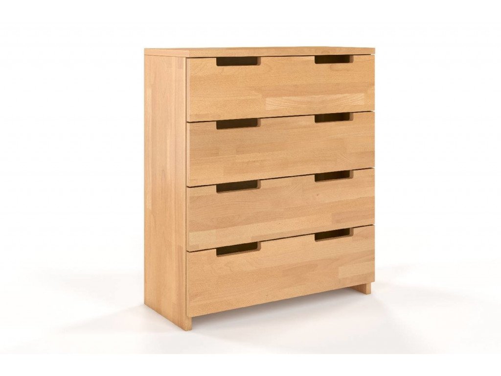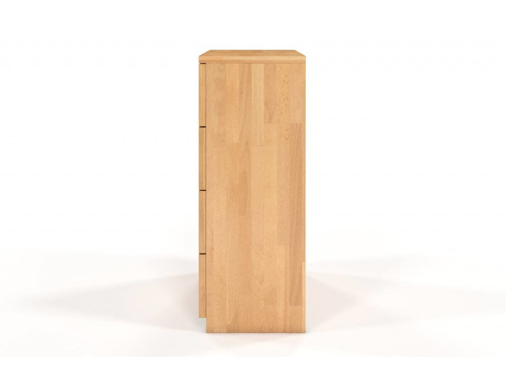 Stredne veľká drevená komoda v minimalistickom štýle odkazujúcim na škandinávsky dizajn. Komoda Spectrum 4 je vyrobená z vysoko kvalitného bukového dreva. Vďaka špeciálnej technológii spájania pomocou "prstového spoja“ je kusom nábytku nadpriemernej životnosti. O vysokej kvalite komody rozhodujú aj detaily - koľajničky zásuviek so systémom tichého zatvárania a brzdou.