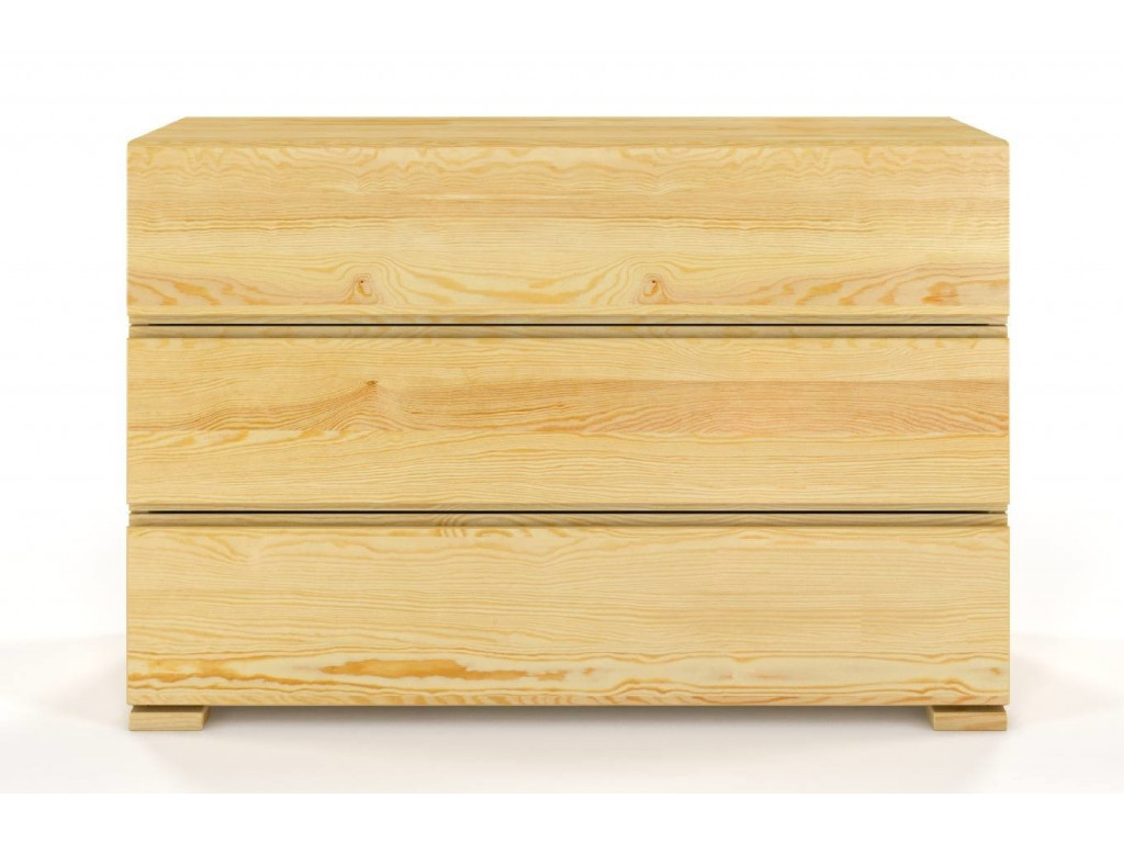 Komoda z masívu Vestre je nábytok s kompaktnou štruktúrou bez zbytočných vyčnievajúcich prvkov. Má 3 priestranné zásuvky a navyše horná doska môže poslúžiť na umiestnenie kníh, praktických či ozdobných predmetov.
