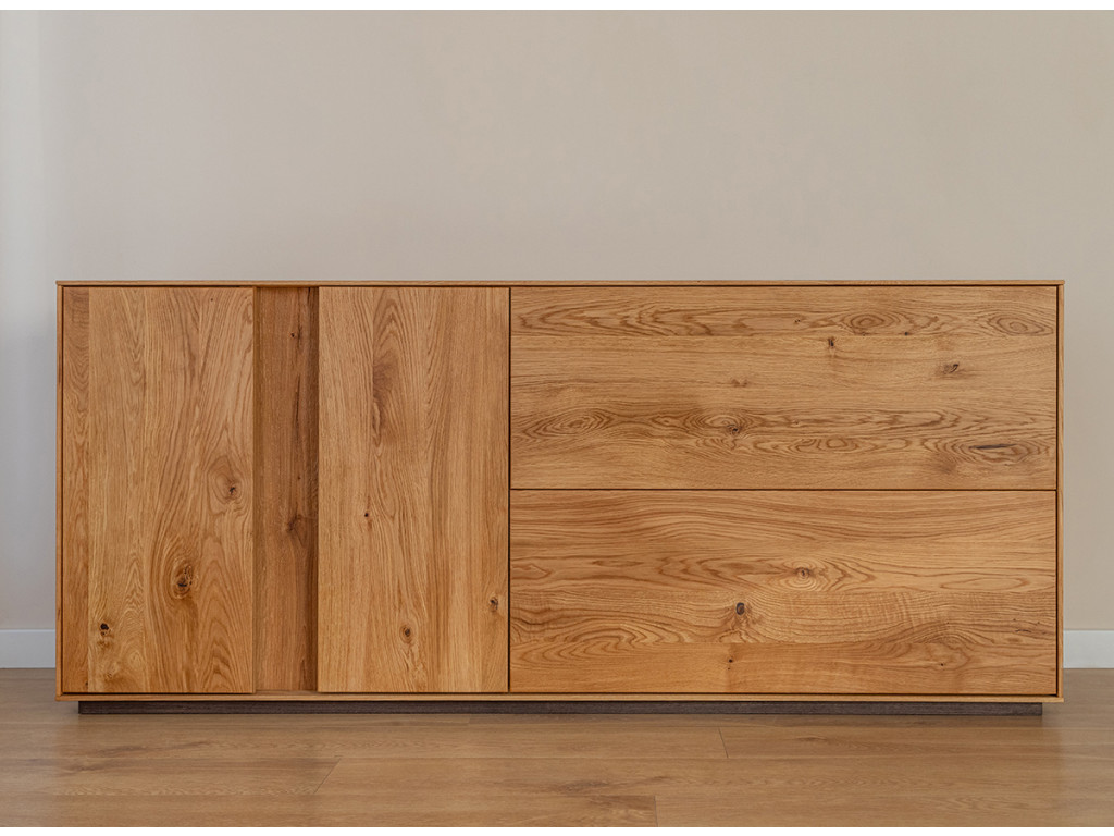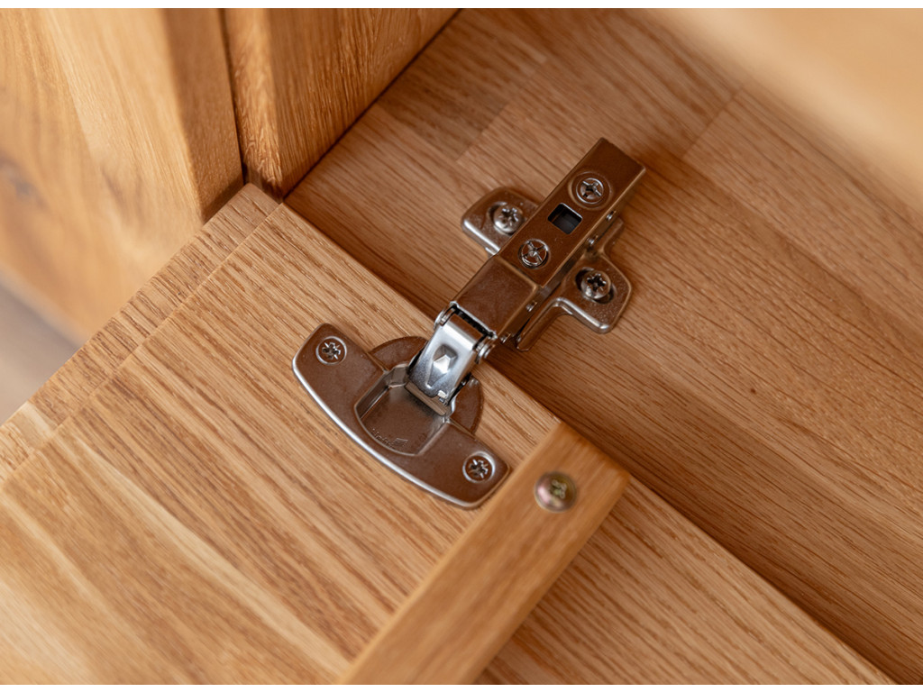 Detailne vypracovaná dubová komoda Collodi vyniká nadčasovým dizajnom a veľkorysým úložným priestorom. V masívnej komode z dubového dreva nájdete dvojicu skriniek s výklopnými dvierkami a dvojicu skriniek s klasickými plnými dvierkami. Prírodné oleje, ktoré boli použité na povrchovú úpravu masívu chránia komodu pred vznikom škvŕn a opotrebením. Zároveň tiež zvýrazňujú efektnú nádheru letokruhov, hrčí a celkovej štruktúry dreva.