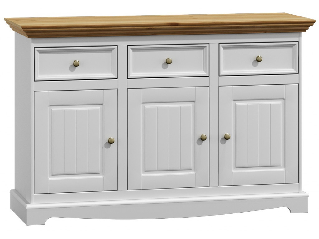 Čo poviete na mimoriadne praktický a krásny kus nábytku zároveň? 3-dverová komoda dokáže zariadiť výzdobu mnohých interiérov - od predsiene, cez obývaciu izbu, jedáleň, až po pracovňu. Jej univerzálna farba a klasická jednoduchosť ozdobia interiér v provensálskom štýle.