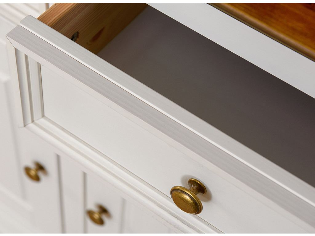 Komoda z borovice sa skladá z 3 pevných zásuviek vybavených systémom tichého zatvárania. Nasledujú tri skrinky, do ktorých môžete skryť kuchynský riad alebo kancelárske doplnky. Masívna komoda Bellu sa vyznačuje aj zmyslom pre každý detail. Staré zlaté úchytky, jemné zárezy na dverách a ozdobná spodná lišta dodávajú celému nábytku jedinečný vzhľad.