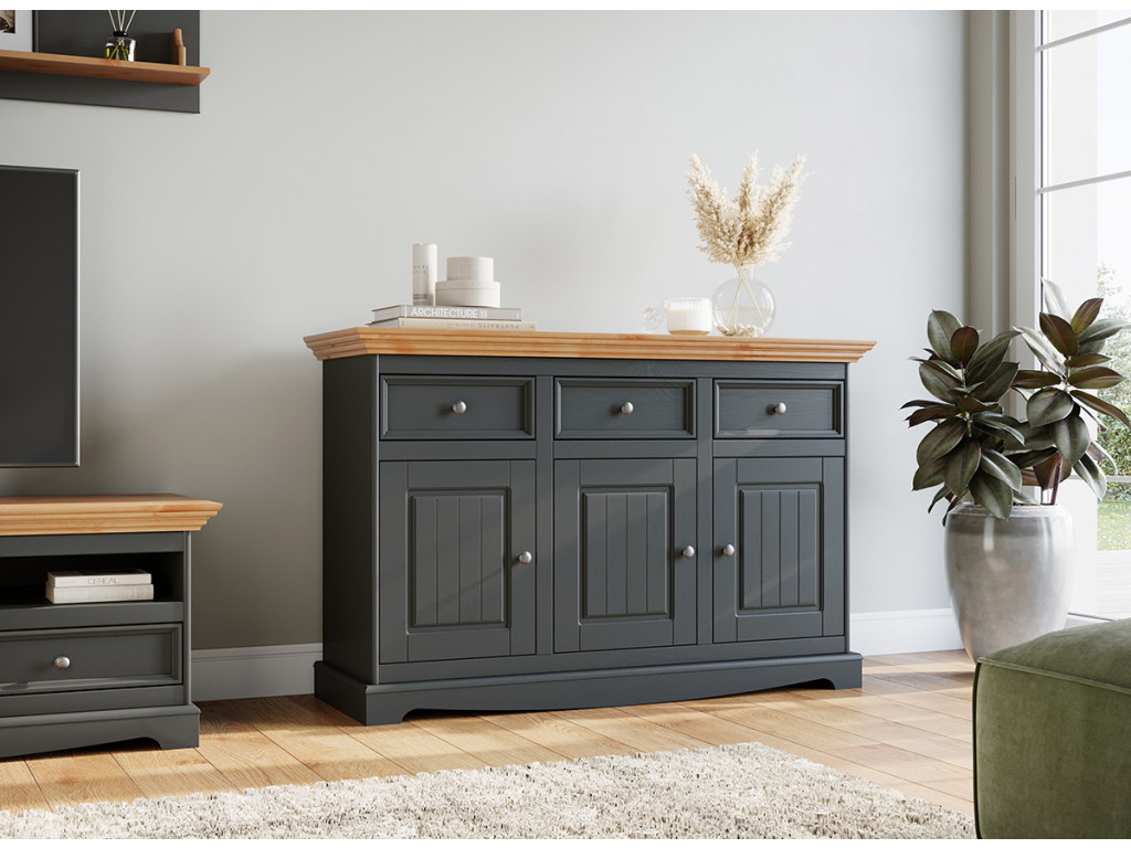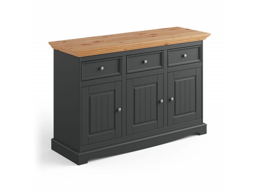 Čo poviete na mimoriadne praktický a krásny kus nábytku zároveň? 3-dverová komoda dokáže zariadiť výzdobu mnohých interiérov - od predsiene, cez obývaciu izbu, jedáleň, až po pracovňu. Jej univerzálna farba a klasická jednoduchosť ozdobia interiér v provensálskom štýle.