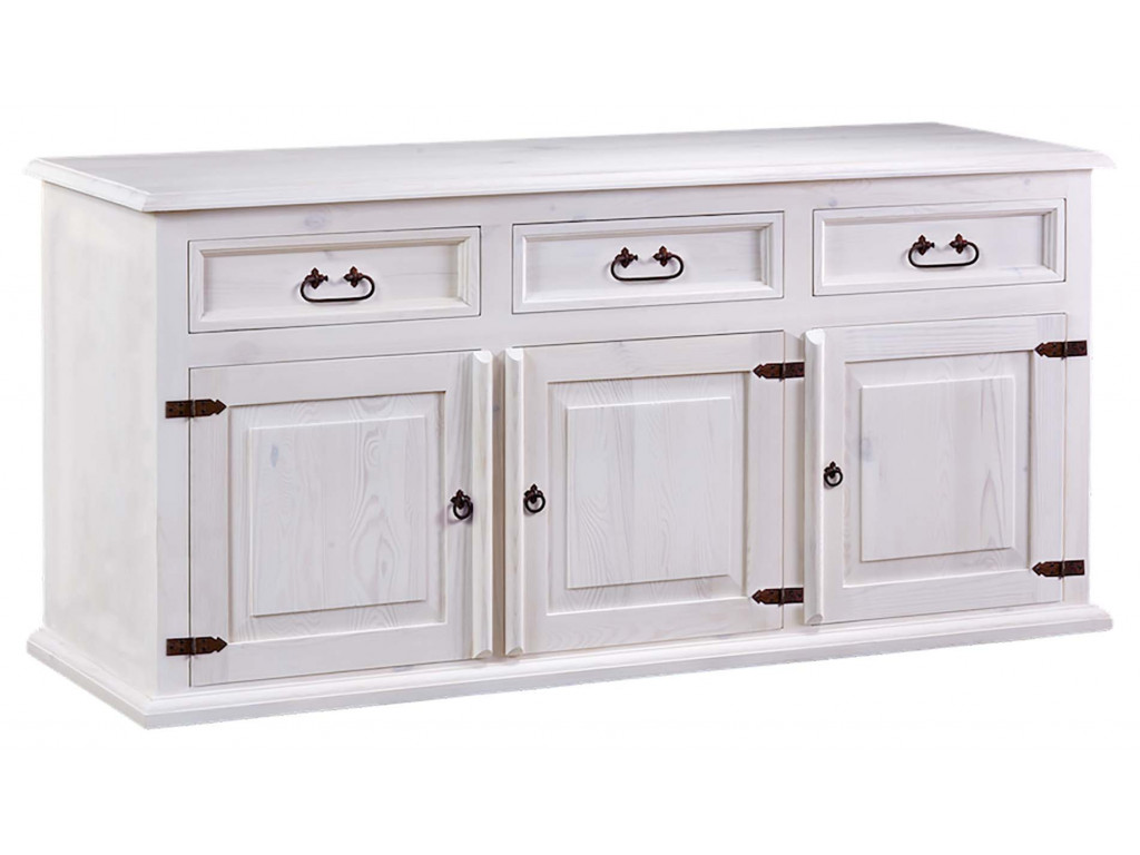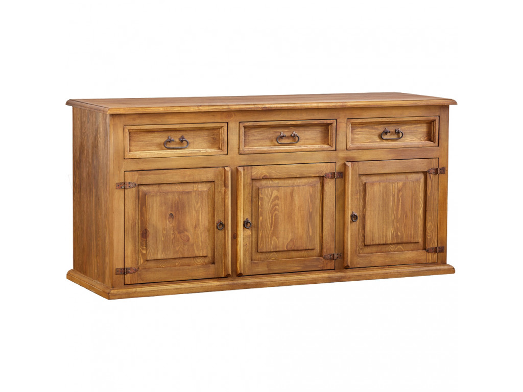 Borovicová masívna komoda Gerlach dokonale vyplní miestnosť a dodá jej rustikálny nádych. Široká komoda z masívu má 3 zásuvky a 3 dvierka, za ktorými sa nachádza polica. Vďaka štedrému úložnému priestoru, ktorý táto komoda poskytuje, ju využijete nielen v spálni a obývačke, ale aj na chodbe či v predsieni.