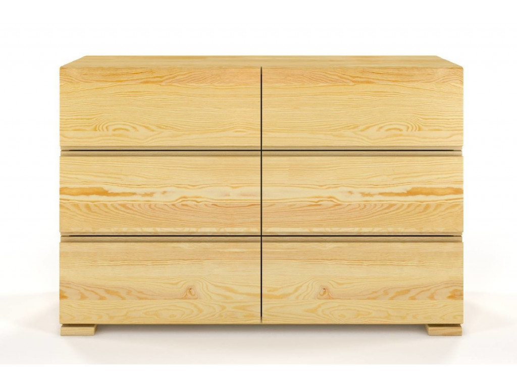 Borovicová komoda so 6 zásuvkami. Klasické úchytky nahradili rukoväte vo forme nenápadných výrezov. Komoda je perfektnou kombináciou funkčnosti a univerzálneho dizajnu, ktorý sa hodí do rôznych interiérov. Najdokonalejšiu súhru zaručíte kombináciou s ďalším nábytkom z kolekcie Vestre.