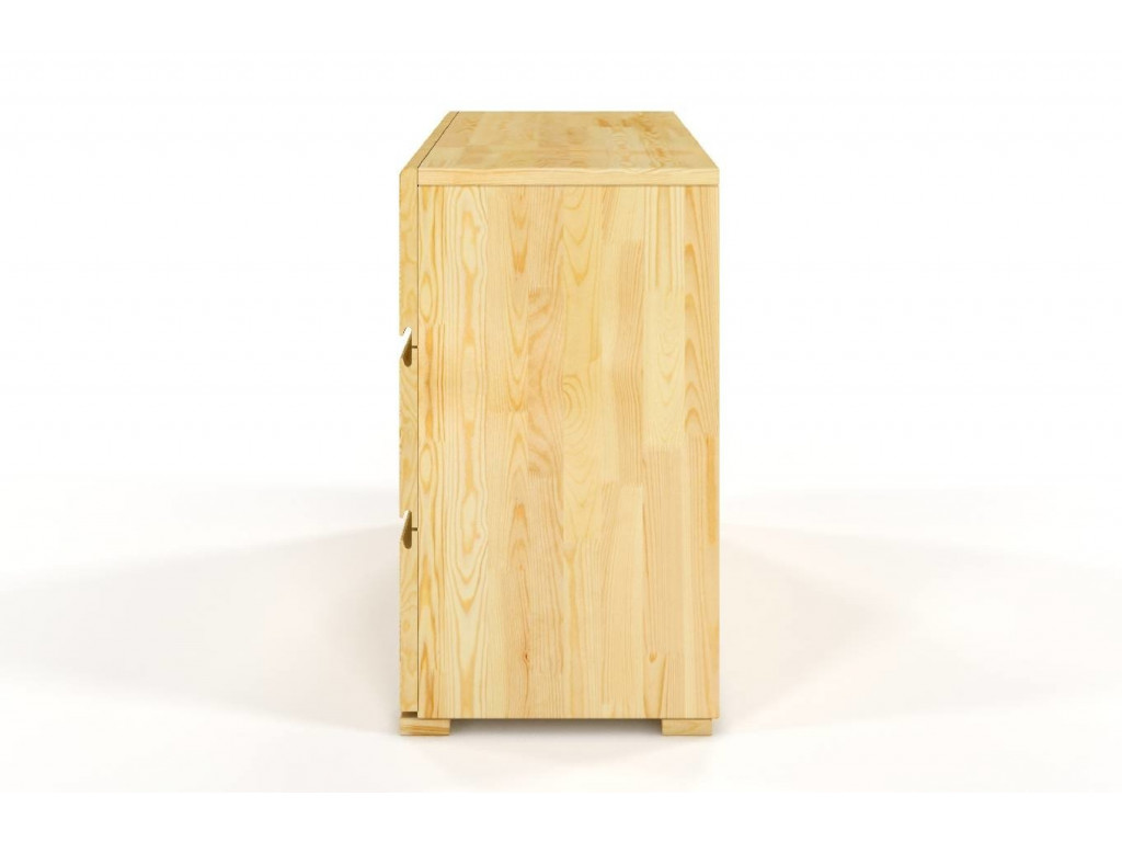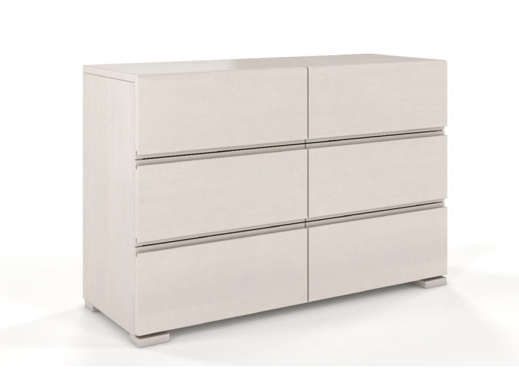 Masívna komoda Vestre je nábytok s kompaktnou štruktúrou bez zbytočných vyčnievajúcich prvkov. Nachádza sa v ňom až 6 priestranných zásuviek a navyše horná doska, ktorá môže slúžiť na umiestnenie kníh, praktických či ozdobných predmetov.