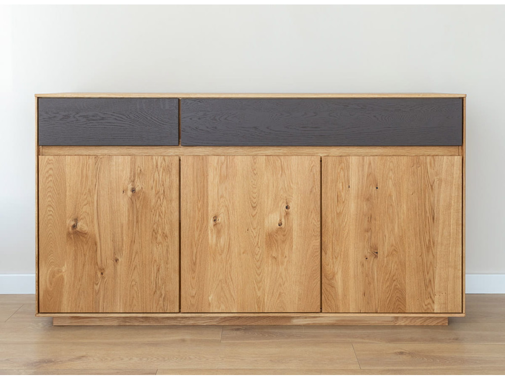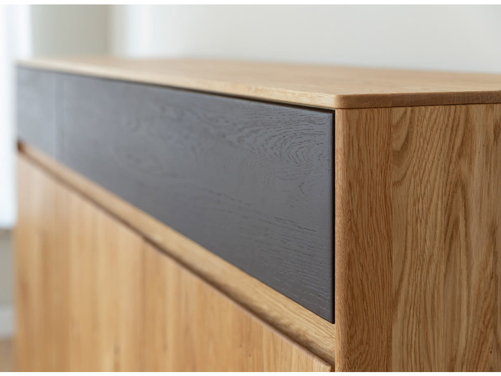 Široká dubová komoda Sora z kolekcie Dubový sen - s grafitovým akcentom
