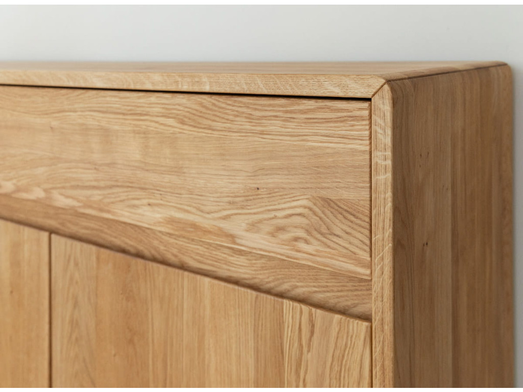 Dubová komoda Tossa je väčší a výraznejší model kolekcie Dubový sen, navrhnutý s dôrazom na konzistentný dizajn, maximálnu funkčnosť a remeselnú kvalitu. Celá komoda – korpus, čelá aj vrchná doska – je vyrobená z masívneho dubového dreva, čo zabezpečuje jednotnú kresbu, farebnú hĺbku a prirodzený vzhľad. Povrchová úprava olejovaním zvýrazňuje zlatistý tón dubu a chráni drevo pri každodennom používaní. Charakteristickým znakom nábytku Tossa sú jemne skosené hrany, ktoré zjemňujú tvar nábytku a dodávajú mu nadčasovú eleganciu. Komoda stojí na mierne zapustenej základni, vďaka čomu pôsobí ľahko, no zároveň zostáva stabilná. Praktické vnútorné riešenie zahŕňa dve zásuvky s pojazdmi Hettich s tlmičom a tri dvierka, za ktorými sa nachádzajú dve priestranné police, vhodné na uloženie textílií, riadu, dokumentov či dekorácií. Vďaka svojej šírke a kompaktnej hĺbke je komoda vhodná do obývačky, jedálne, kancelárie aj reprezentatívnych priestorov.