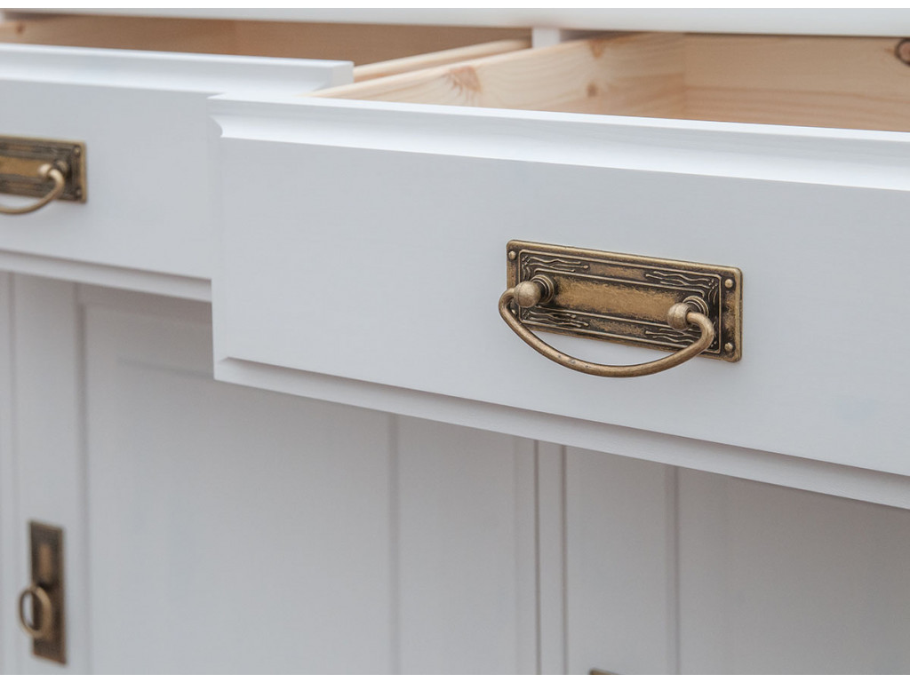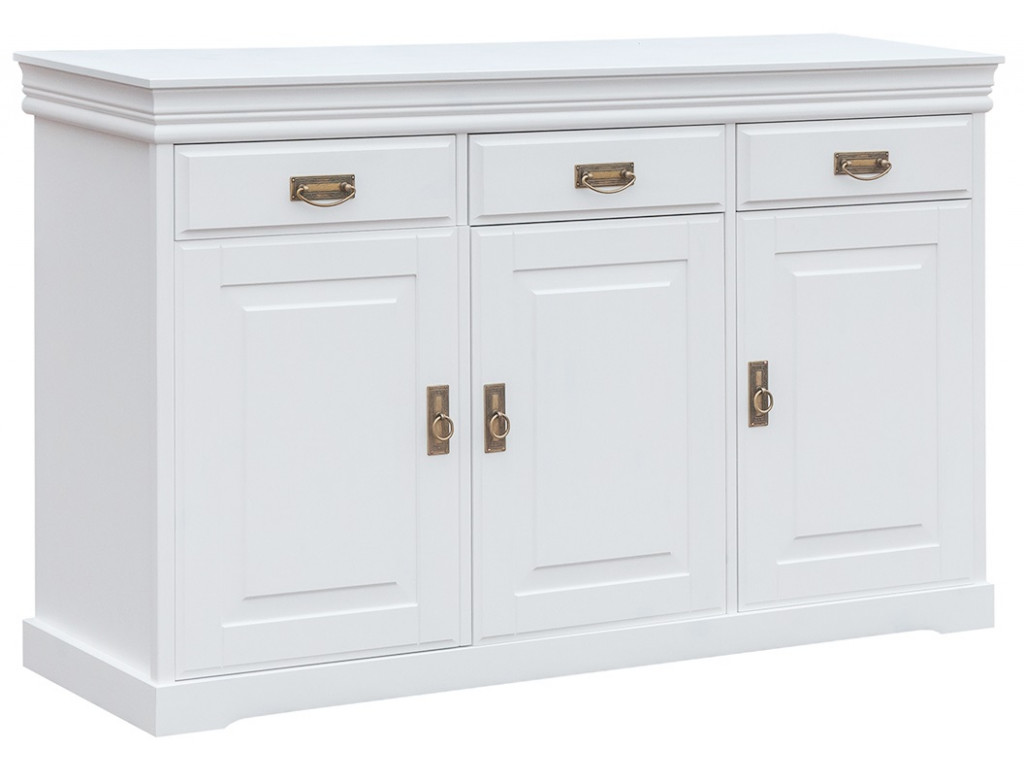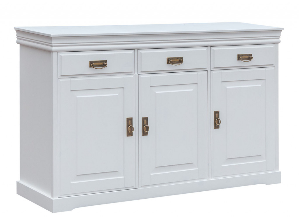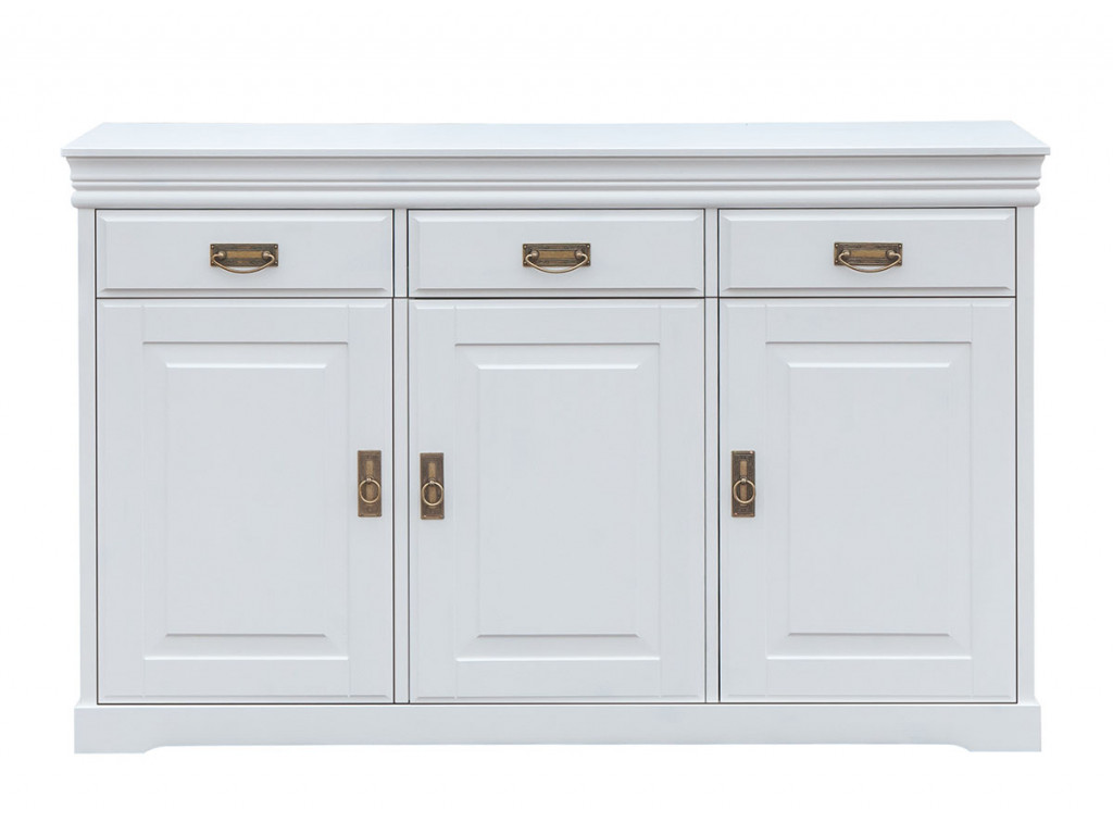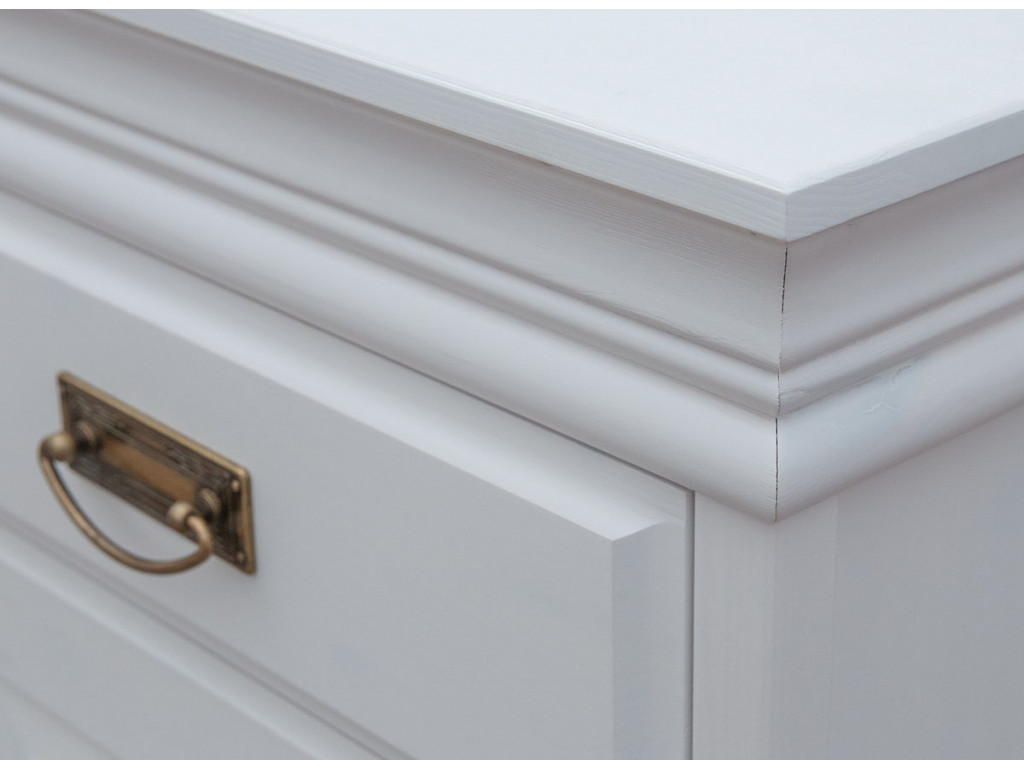 Borovicová komoda je potiahnutá farbou na vodnej báze v odtieni teplej bielej. Krytie farby je okolo 85%, takže môžete ľahko vidieť zrnko dreva ním pokryté. Prítomnosť letokruhov a uzlov dokazuje, že materiál použitý na výrobu nábytku je prírodný. Za pozornosť stoja štýlové kovové úchytky, ktoré zvýrazňujú provensálsky štýl trojdverovej komody. Ak sa rozhodnete kúpiť bielu borovicovú komodu, môžete si byť istí, že bude vkusným doplnkom vášho interiéru.