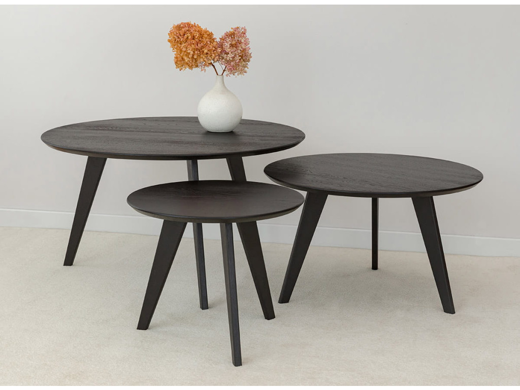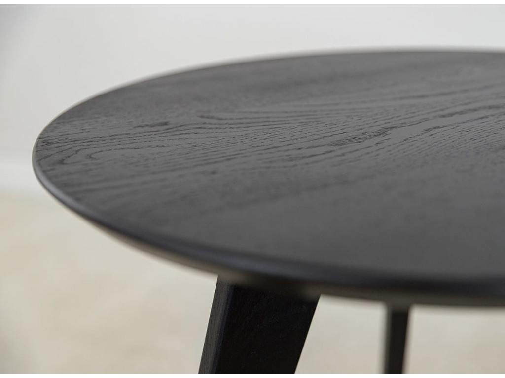 Okrúhly konferenčný stolík Tello v čiernej farbe prinesie vašej obývačke nádych elegancie a klasického šarmu. Vyrobený z masívneho dubového dreva, je robustný a odolný, čo z neho robí praktický kúsok pre každodenné použitie. Vďaka prepracovanému dizajnu ho ľahko zakomponujete do moderných aj tradičných interiérov. Je ideálny nielen ako konferenčný stolík pred pohovkou, ale aj ako praktický odkladací priestor na menšie predmety, či už v obývačke alebo pracovni.