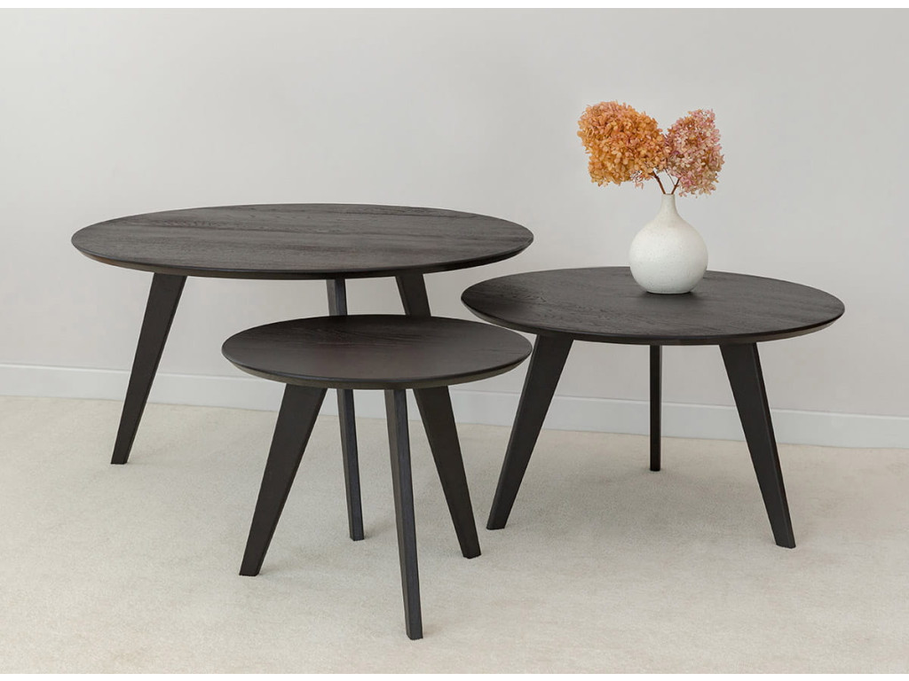 Vneste do svojej obývačky čistý a sofistikovaný vzhľad s okrúhlym konferenčným stolíkom Tello. Je vyrobený z masívneho dubu, ktorý vyniká svojou trvácnosťou a odolnosťou proti opotrebeniu. Jeho čierny tón dokonale zapadne do moderných aj tradičných interiérov.