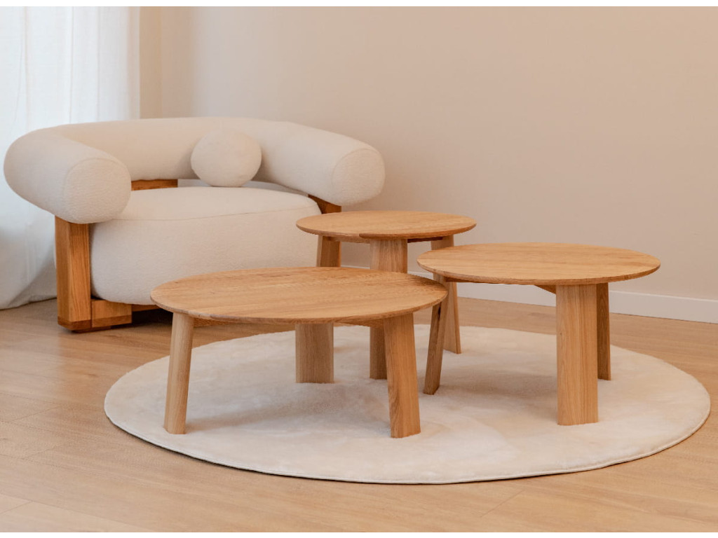 Dubový konferenčný stolík Monto predstavuje harmonické spojenie funkčnosti, estetiky a prírodnej elegancie. Jeho okrúhly tvar s priemerom 61 cm a jemne ošetrený povrch z dubového dreva pôsobí prirodzene a nadčasovo. Vďaka svojej čistej forme bez zbytočných ozdôb sa ľahko začlení do každého typu interiéru – od moderného až po rustikálny.