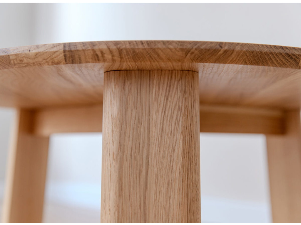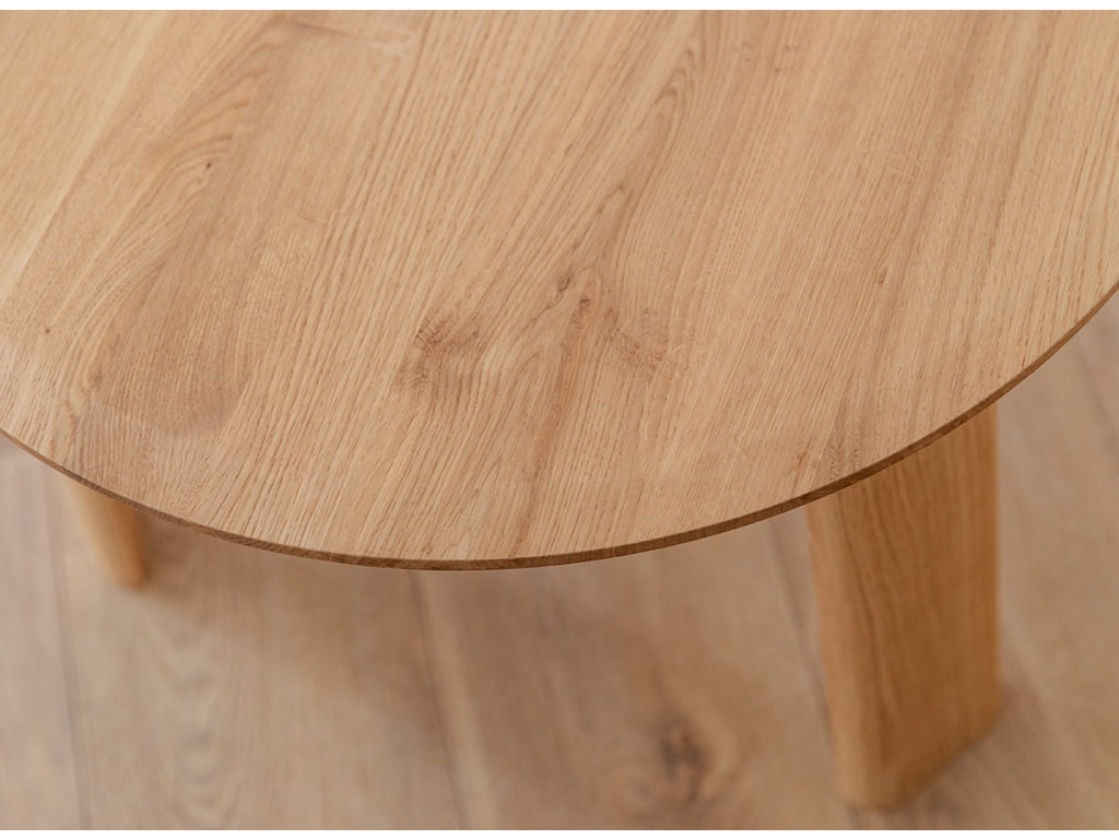 Väčší okrúhly stolík Monto s priemerom 71 cm ponúka viac priestoru bez toho, aby pôsobil masívne. Je výbornou voľbou pre tých, ktorí ocenia pohodlie pri pohostení hostí alebo pri oddychu. Prírodný dubový povrch s olejovanou úpravou dodáva teplo a noblesu. Je to dizajnový aj praktický prvok, ktorý sa hodí do väčších miestností.