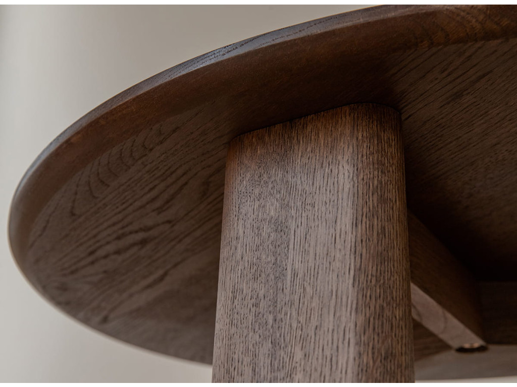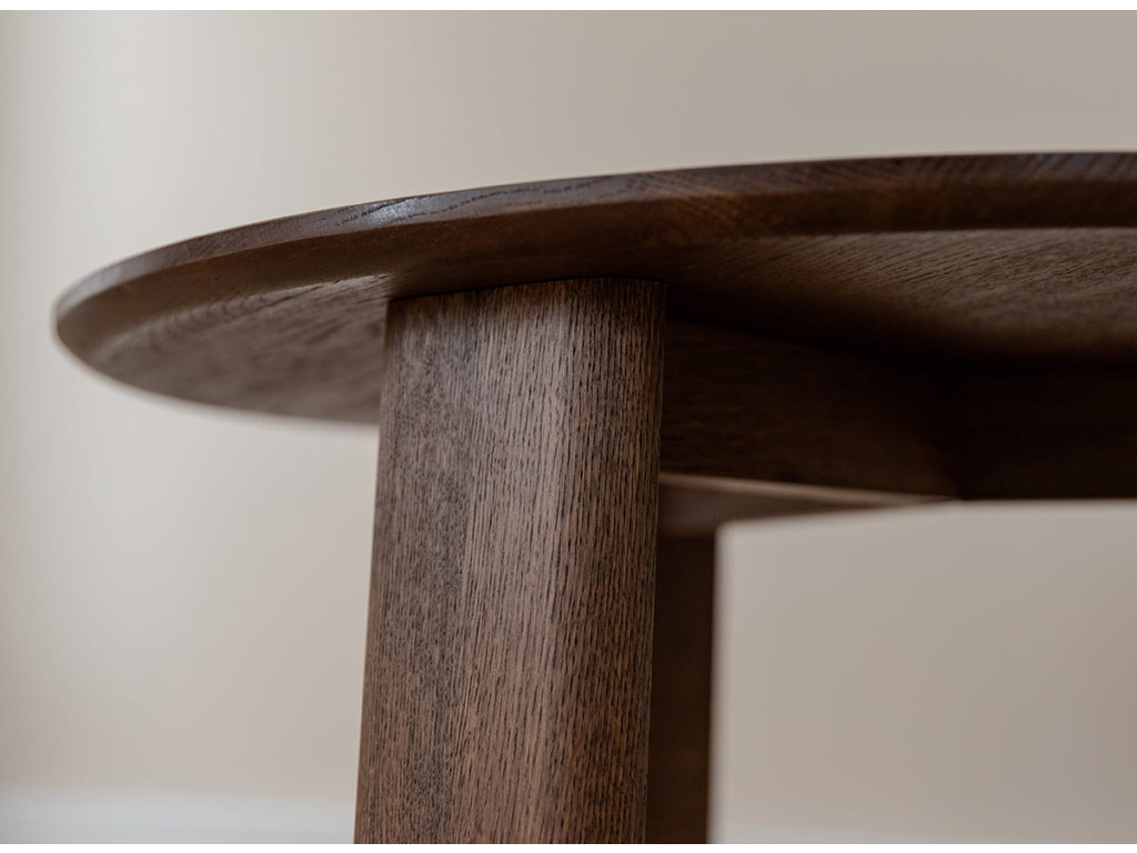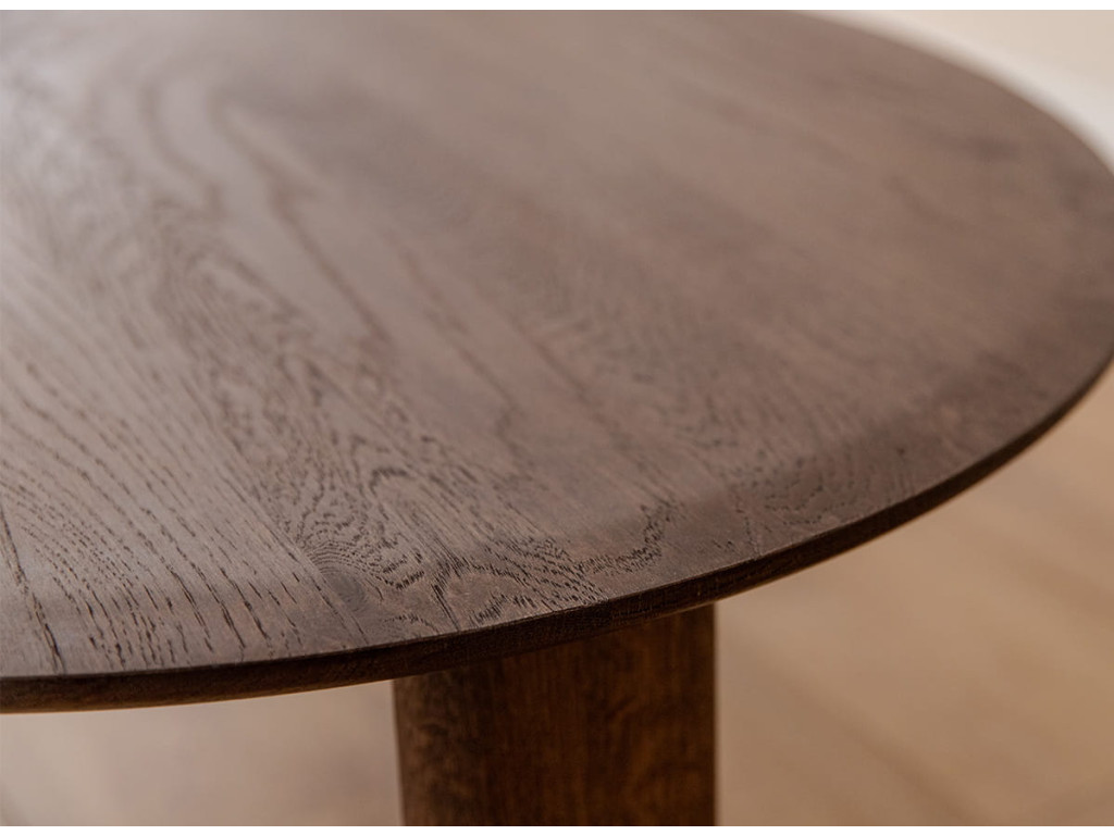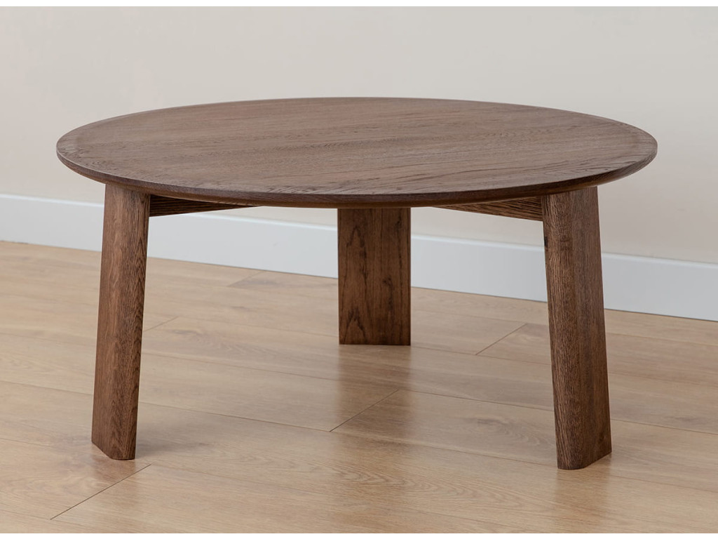 Masívny konferenčný stolík Monto, v tmavej tabakovej farbe predstavuje harmonické spojenie funkčnosti, estetiky a prírodnej elegancie. Jeho okrúhly tvar s priemerom 71 cm a jemne ošetrený povrch z dubového dreva pôsobí prirodzene a nadčasovo. Vďaka svojej čistej forme bez zbytočných ozdôb sa ľahko začlení do každého typu interiéru – od moderného až po rustikálny.