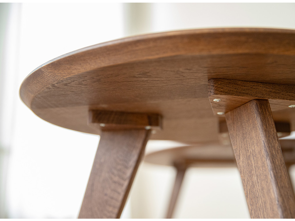 Tello je viac než len dekoratívny kus nábytku. Vďaka masívnemu dubu je pevný a odolný voči poškodeniu, takže bez problémov zvládne každodenné používanie, či už na odkladanie šálok, kníh alebo diaľkových ovládačov. Jeho hrubá doska so zaujímavou štruktúrou dreva nielenže pôsobí esteticky, ale je aj praktická na udržiavanie – ideálny kompromis medzi štýlom a funkčnosťou. Frézovaný vrch a nohy mu dodávajú ľahkosť.