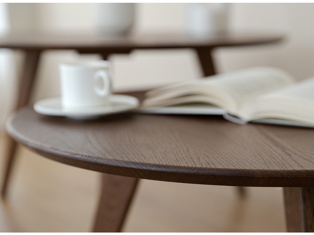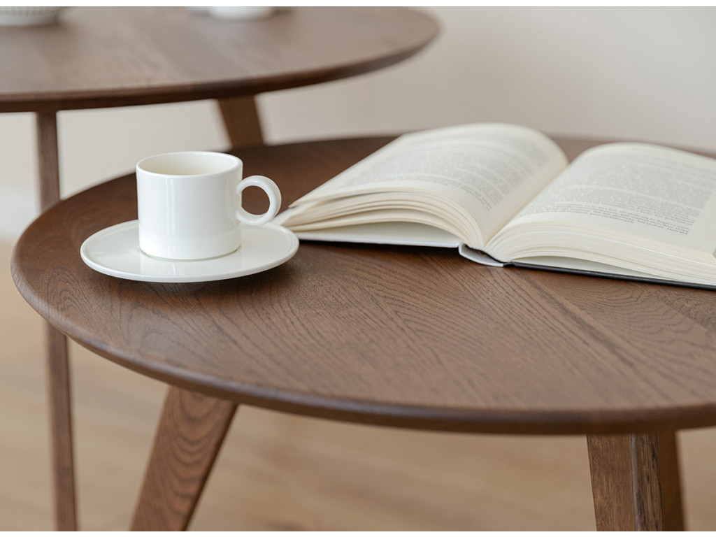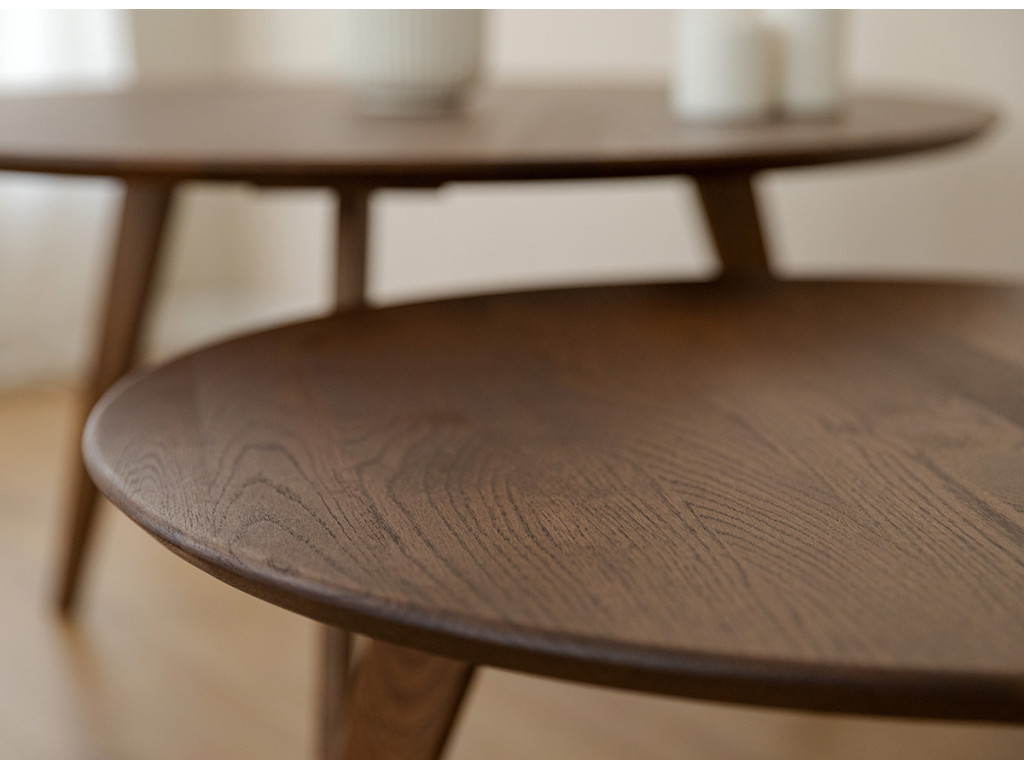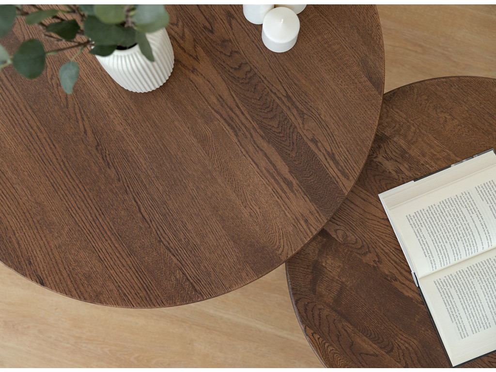 Vneste do svojej obývačky čistý a sofistikovaný vzhľad s okrúhlym konferenčným stolíkom Tello. Je vyrobený z masívneho duba, ktorý vyniká svojou trvácnosťou a odolnosťou proti opotrebeniu. Jeho hnedý tón dokonale zapadne do moderných aj tradičných interiérov.