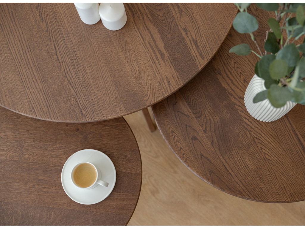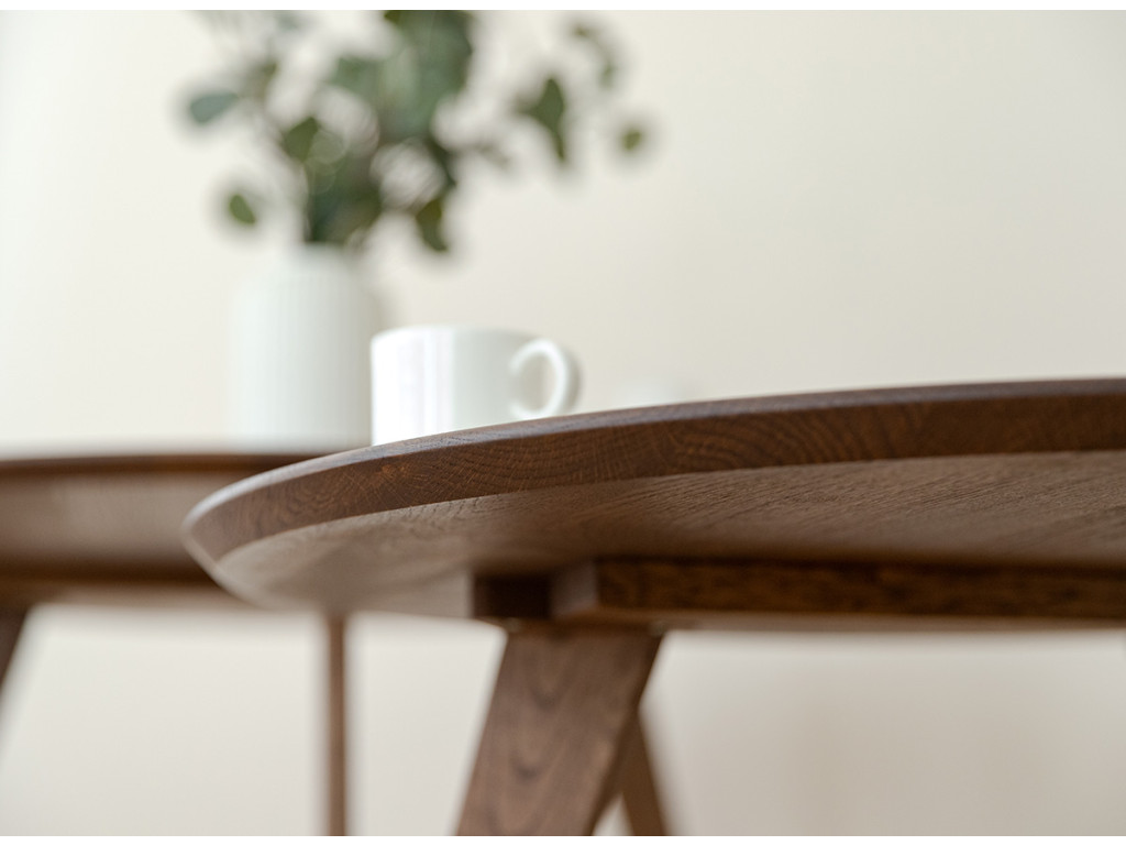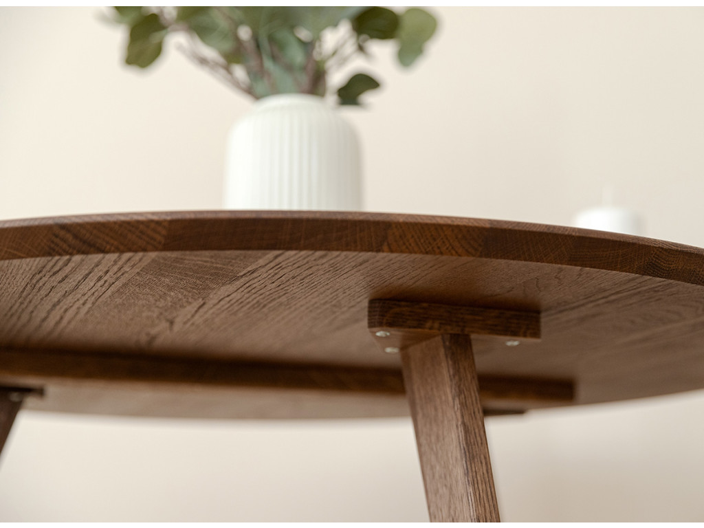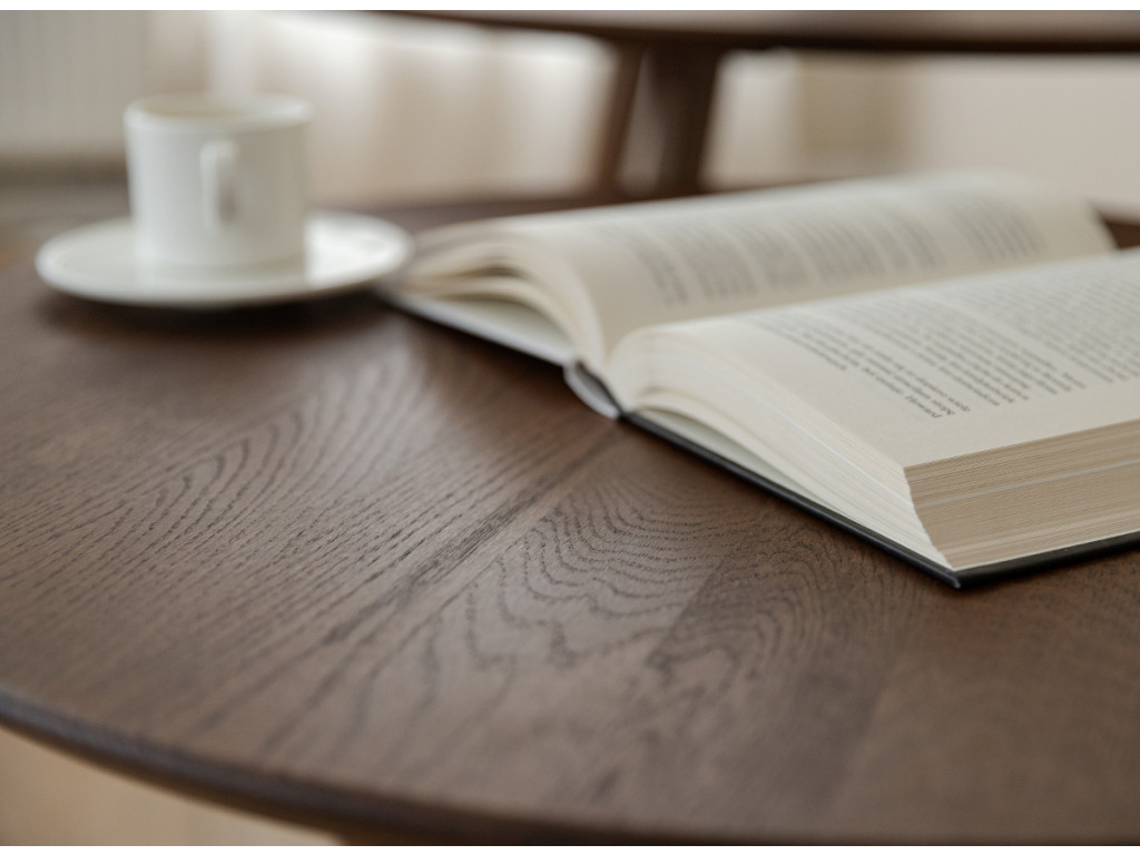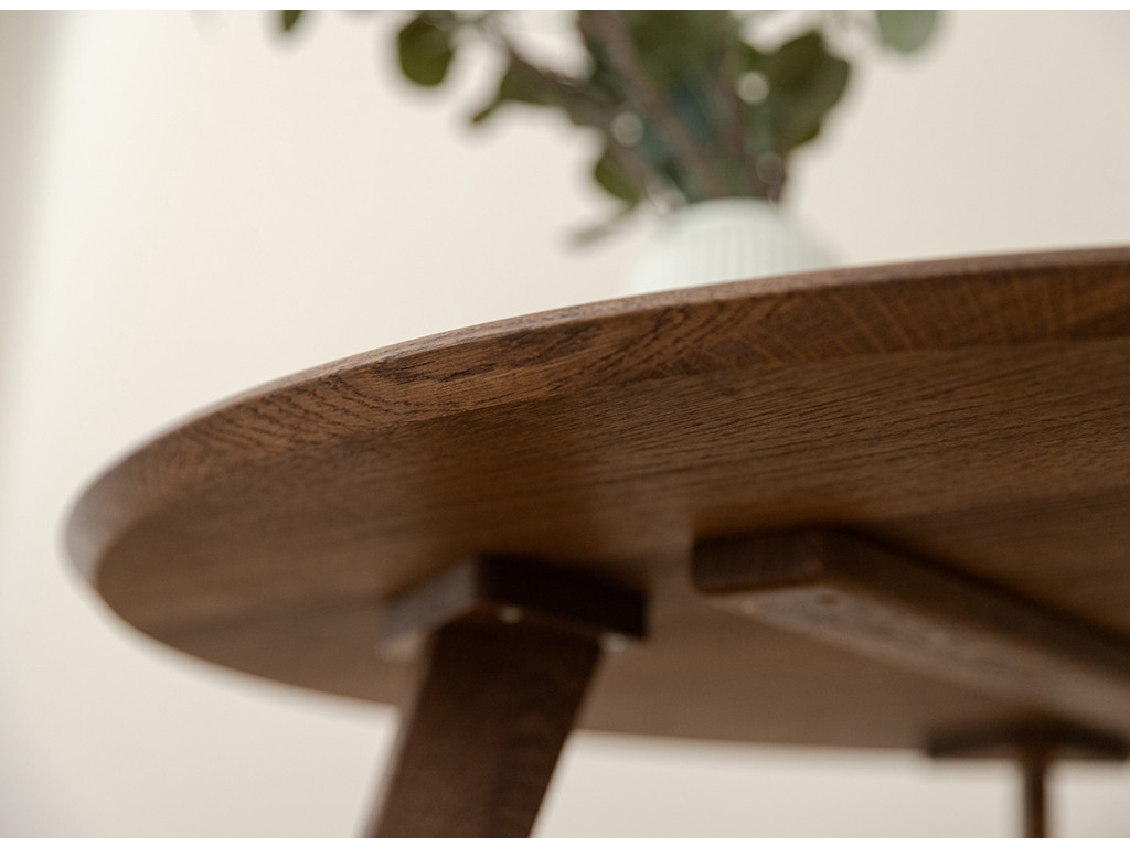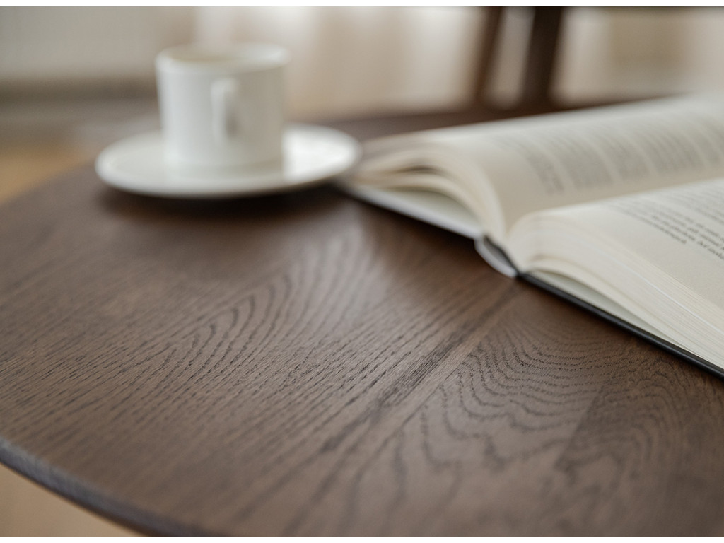 Po mnoho generácií je drevený nábytok v našich domácnostiach silným prvkom. Čarovný tabakovo hnedý stolík je vyrobený z dubového dreva. Prirodzené kúzlo stromových uzlov viditeľné na stole je dôsledkom dôkladného výberu už v počiatočnej fáze výroby. Celý kus nábytku je naolejovaný, aby bola zaistená jeho trvanlivosť.