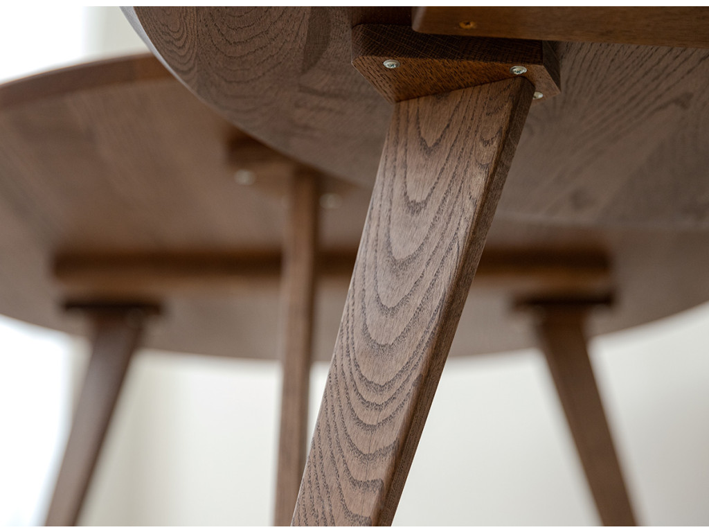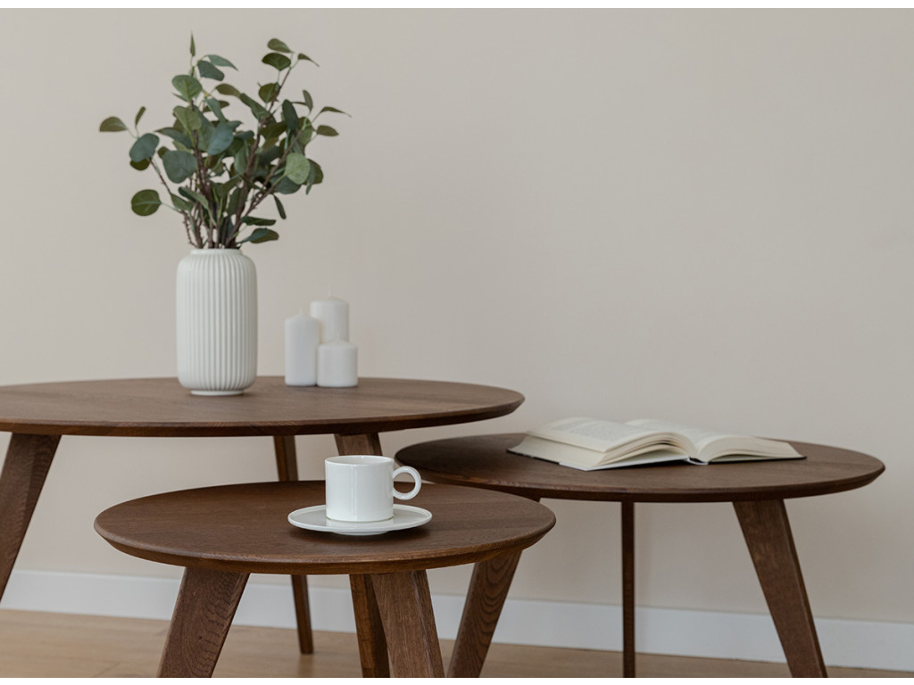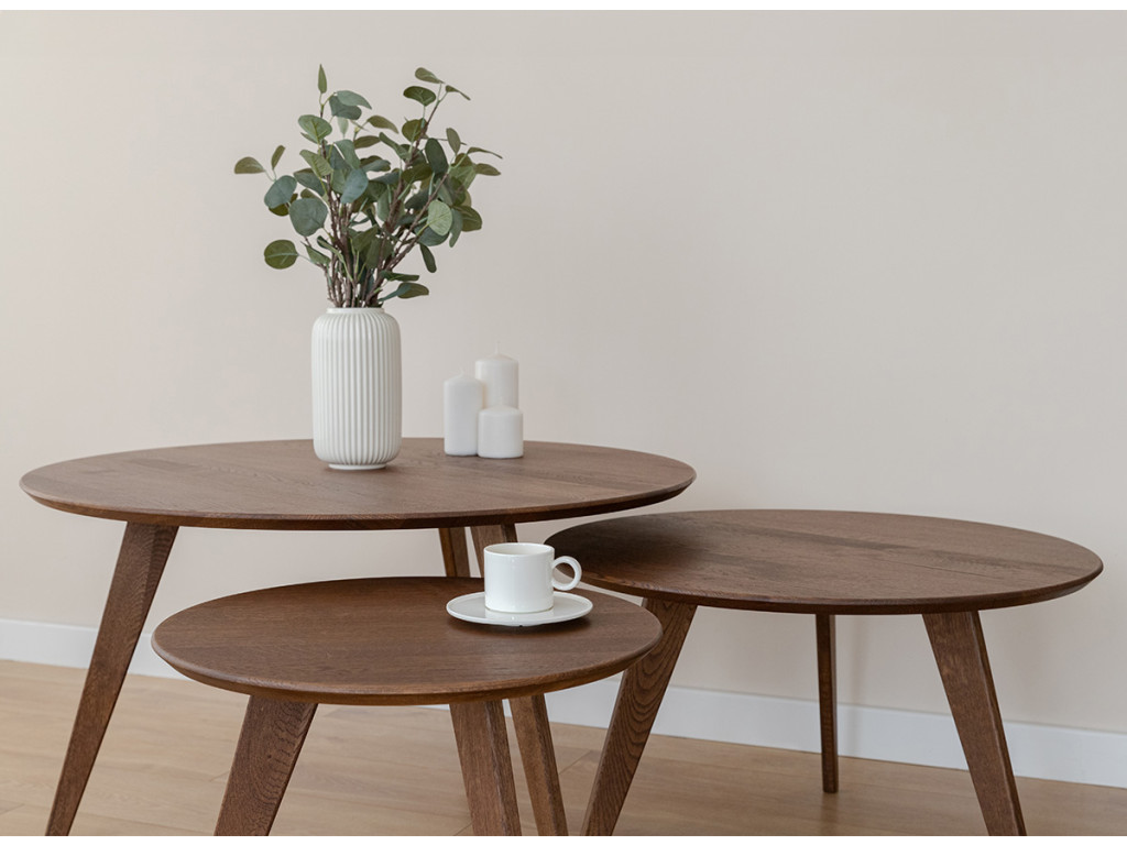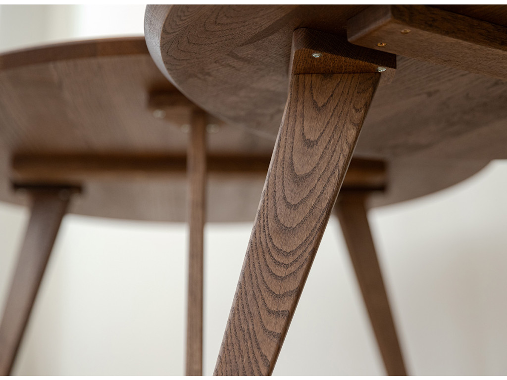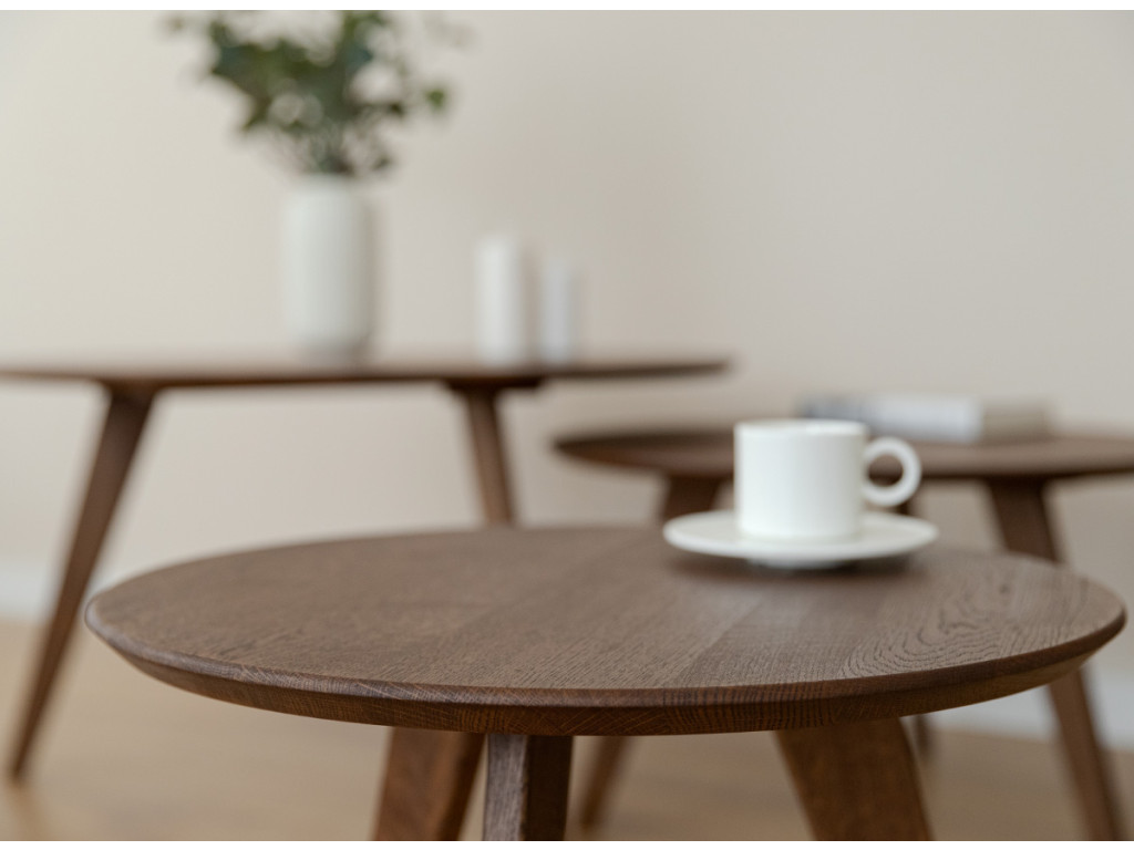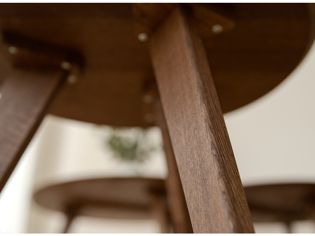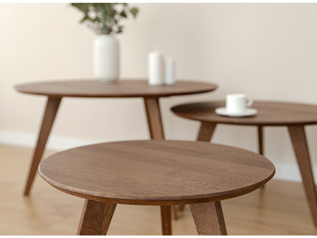Po mnoho generácií je drevený nábytok v našich domácnostiach silným prvkom. Čarovný tabakovo hnedý stolík je vyrobený z dubového dreva. Prirodzené kúzlo stromových uzlov viditeľné na stole je dôsledkom dôkladného výberu už v počiatočnej fáze výroby. Celý kus nábytku je naolejovaný, aby bola zaistená jeho trvanlivosť.