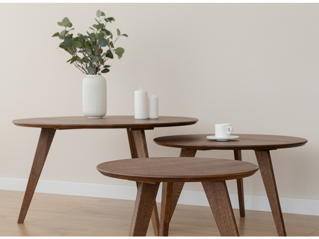 Po mnoho generácií je drevený nábytok v našich domácnostiach silným prvkom. Príjemný tabakovo hnedý stolík je vyrobený z dubového dreva. Prirodzené kúzlo stromových uzlov viditeľné na stole je dôsledkom dôkladného výberu už v počiatočnej fáze výroby. Celý kus nábytku je naolejovaný, aby bola zaistená jeho trvanlivosť.