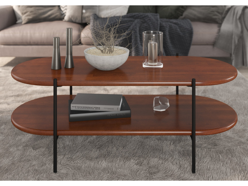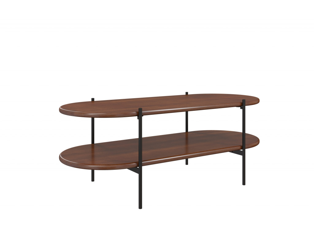 Oválny konferenčný stôl je vynikajúcim doplnkom do moderných aj klasických interiérov. Stojí na vysokých čiernych nožičkách, vďaka ktorým môžete neustále pod stolom udržiavať poriadok. Konferenčný stolík z masívu vo farbe orech rozjasní každý interiér a poskytne úložný priestor pre občerstvenie, knihy, dekorácie a ďalšie.