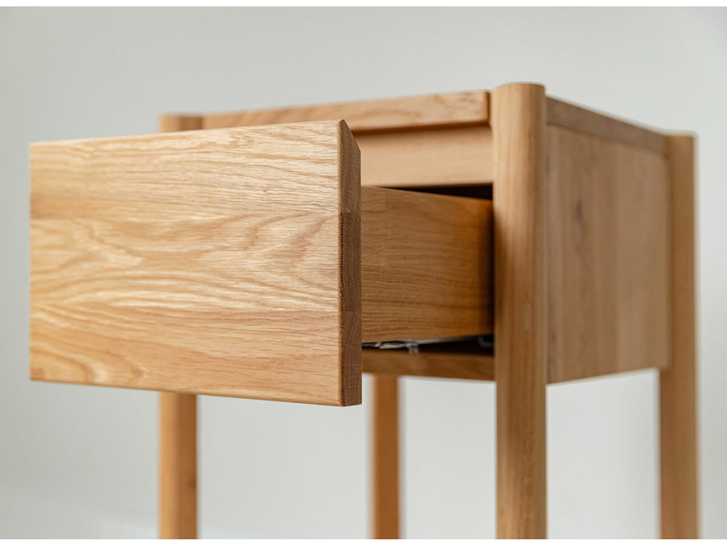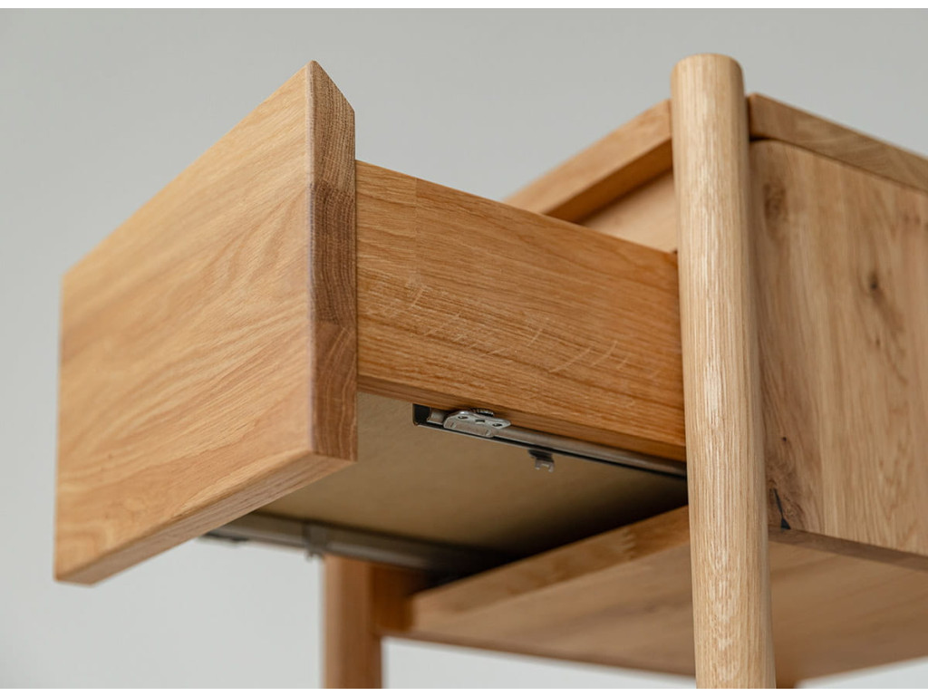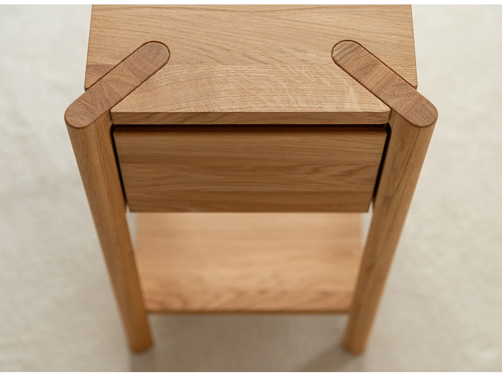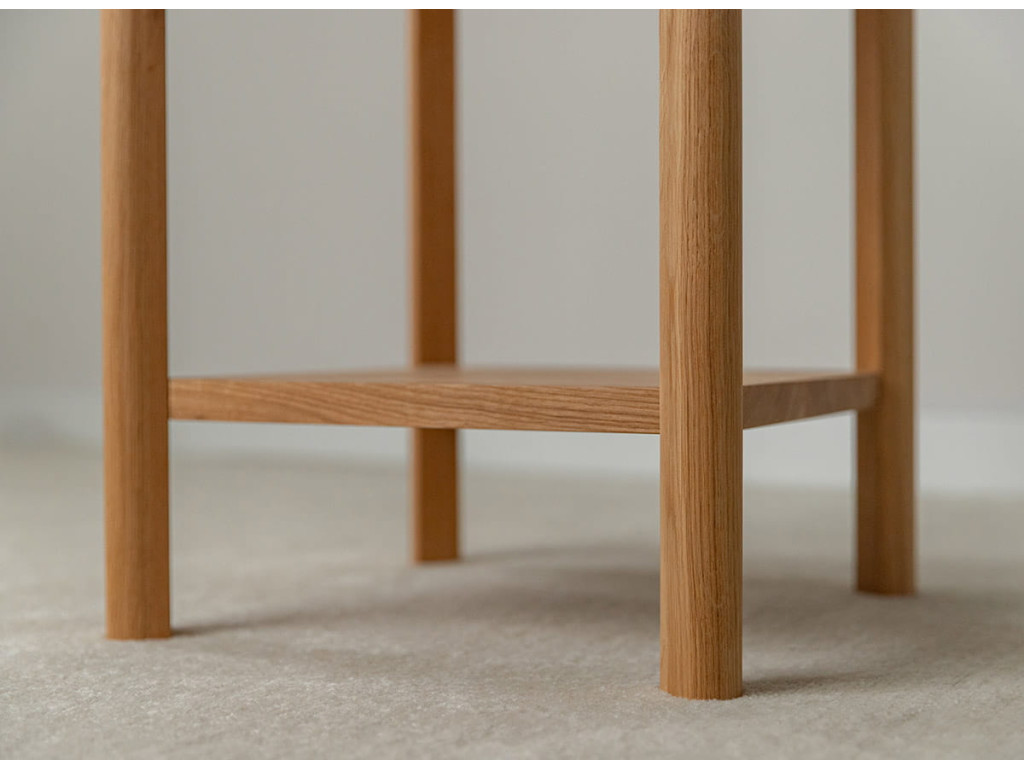 Stolík Campi z masívneho dubu ponúka praktické riešenie do menších priestorov. Kombinácia zásuvky a police umožňuje prehľadné uloženie vecí. Jeho jednoduchý dizajn pôsobí prirodzene a neruší interiér. Ideálny doplnok pre domácnosť, kde sa spája funkčnosť a čistý štýl.