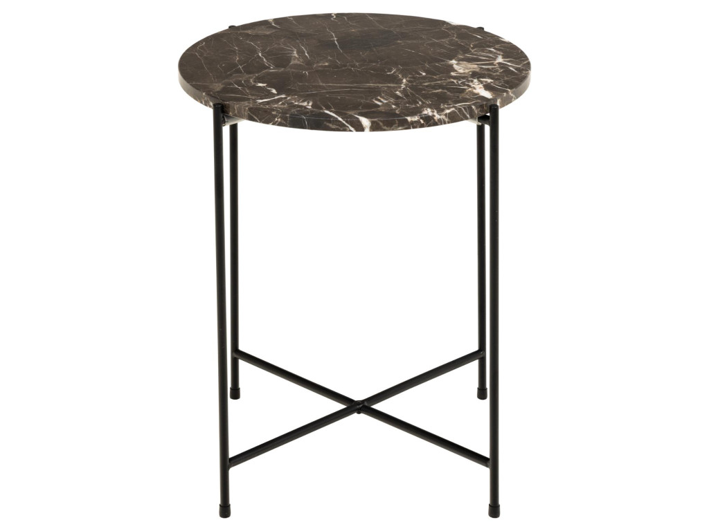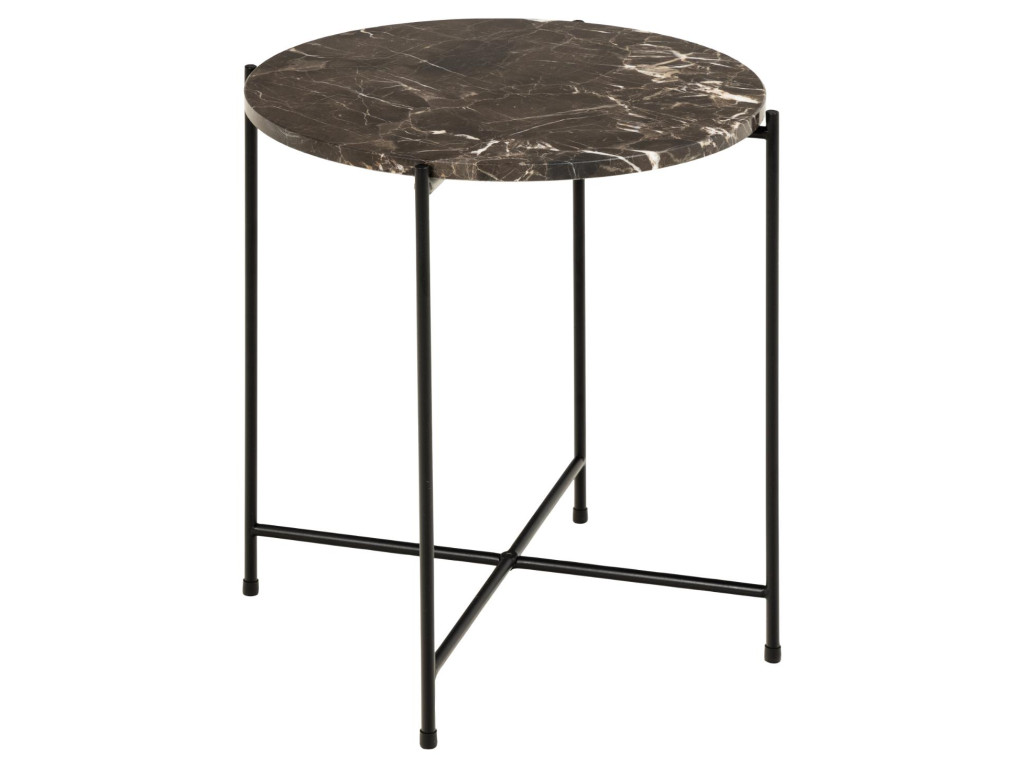 Avila round side table, top brown Emperador polished marble, base matt black rough powder coated steel, Ø42x45 cm