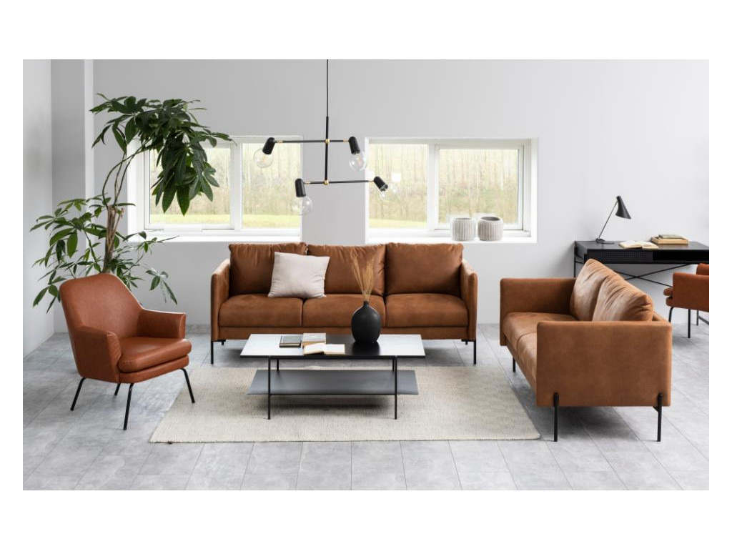 Konferenčný stolík Angus okamžite zaujme kontrastom — tmavá kresba čierneho jaseňa na doske pôsobí teplo a prirodzene, zatiaľ čo subtílne oceľové nohy v matnej čiernej dodávajú moderný industriálny nádych. Vďaka čistým líniám a vzdušnej konštrukcii pôsobí celok ľahko, no zároveň sebavedomo ohraničí priestor pred gaučom a vytvorí harmonické centrum obývačky.