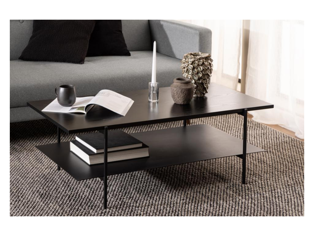 Stolík Angus je obdĺžnikový konferenčný prvok s výraznou čiernou povrchovou úpravou. Kombinuje MDF s oceľou pre dlhú životnosť a moderný industriálny vzhľad. Perfektný pre obývačku či pracovný kútik.