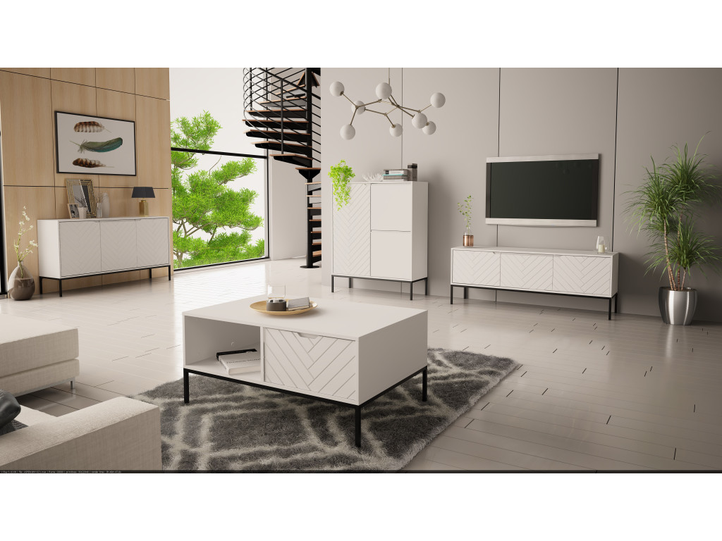 Konferenčný stolík Aspen 05 z kolekcie Aspen v matnej bielej farbe ponúka moderný dizajn s čistými líniami a praktickým úložným priestorom. Jeho frézované čelá a minimalistický vzhľad dokonale zapadnú do štýlových interiérov. Otvorená polica a uzavreté úložné priestory s vyklápacími dvierkami z oboch strán zaručujú dostatok miesta pre knihy, časopisy či iné doplnky.