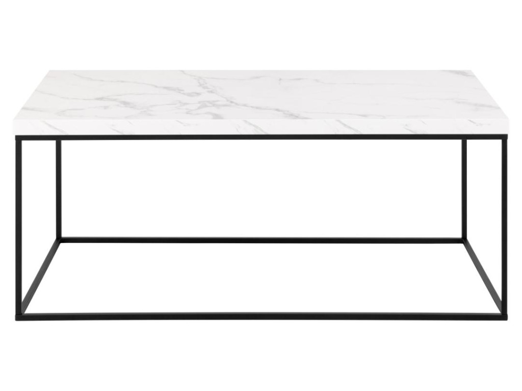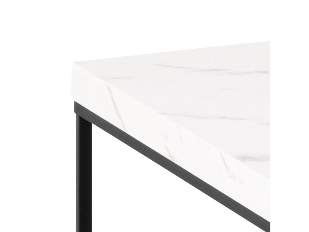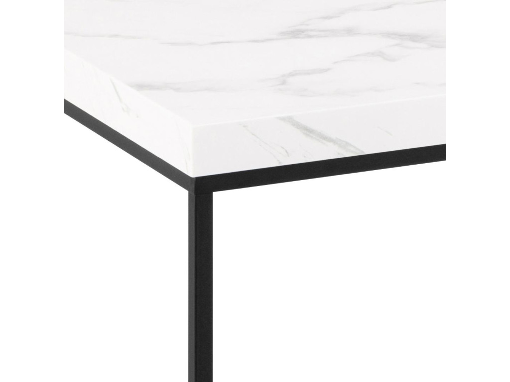 Stolík Barossa s bielym mramorovým vzhľadom dodáva interiéru sviežosť a eleganciu. Kontrastná čierna konštrukcia vytvára moderný dizajnový prvok. Ideálny ako stredobod obývacej miestnosti. Vhodný aj na vystavenie dekorácií.