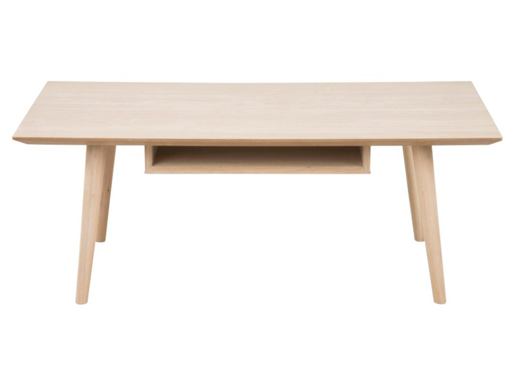 Obdĺžnikový stolík s otvorenou priehradkou na časopisy alebo ovládače. Vyhotovený z kvalitnej bielenej dubovej dyhy, ktorá zjemní každý interiér. Rozmery 115 × 60 × 42 cm z neho robia praktický a decentný doplnok. Skvele sa hodí k ostatným prvkom z kolekcie Century.