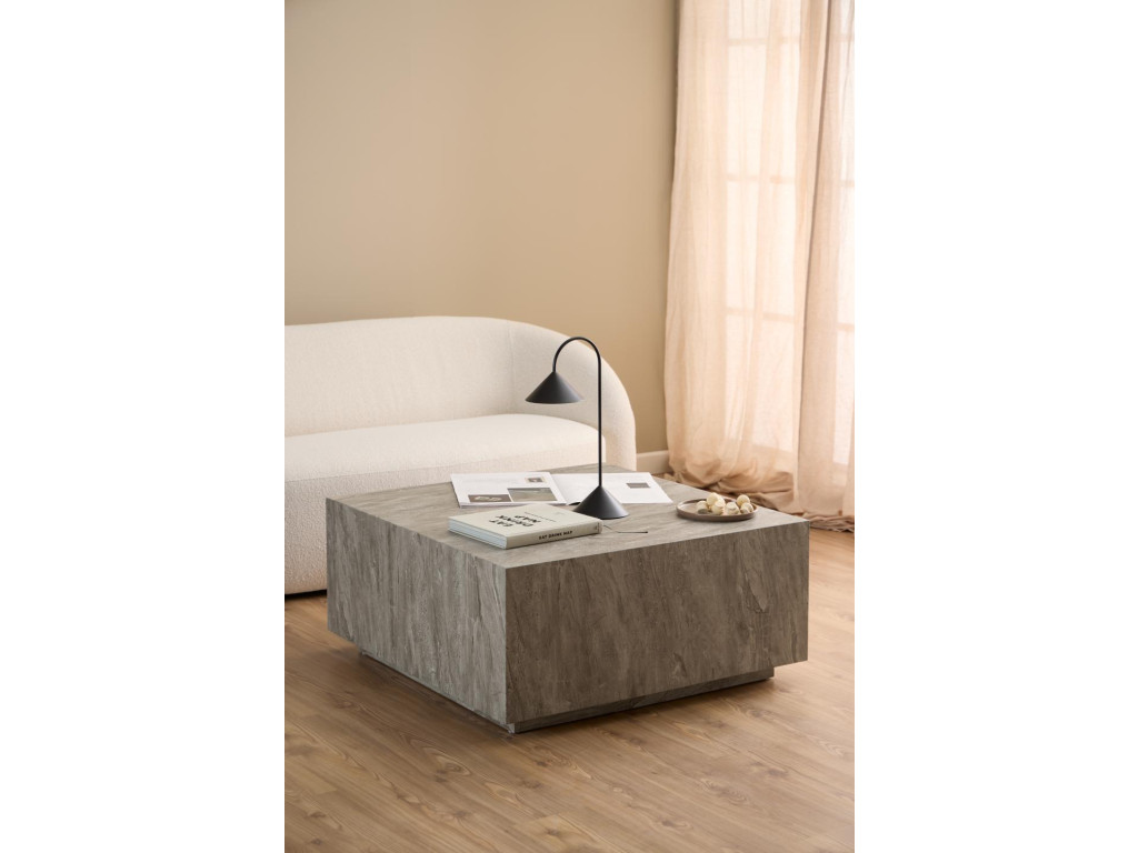 Štvorcový stolík Dice v sivom mramorovom dekore je ideálnou voľbou pre nadčasové interiéry. Elegantný dizajn vynikne v kombinácii s čiernym nábytkom. Výborne poslúži ako konferenčný či odkladací stolík. Jednoduchý, no pôsobivý doplnok obývačky.