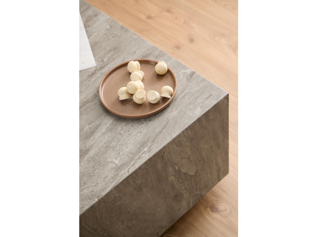 Ak hľadáte výrazný doplnok s architektonickým nádychom, stolík Kocky je pre vás ako stvorený. Jeho štvorcový formát a mramorový vzhľad v sivom odtieni pôsobia moderne a zároveň nadčasovo. Stolík pôsobí akoby levitoval – vďaka nízkej, takmer neviditeľnej základni, ktorá podčiarkuje jeho štýl.
