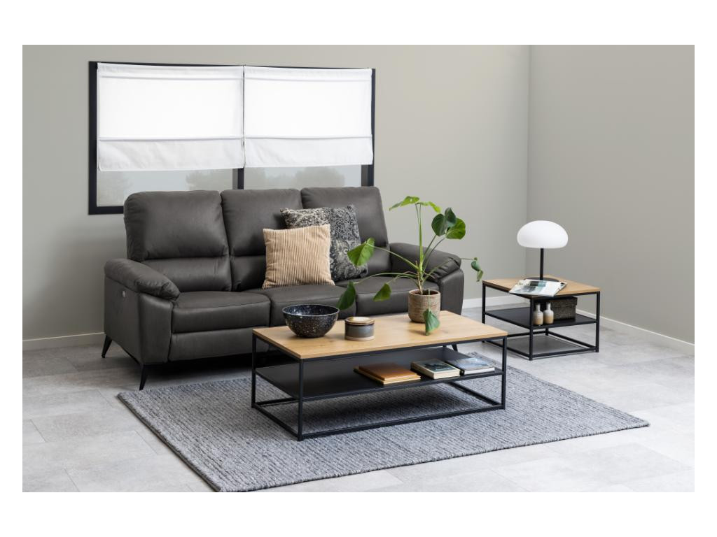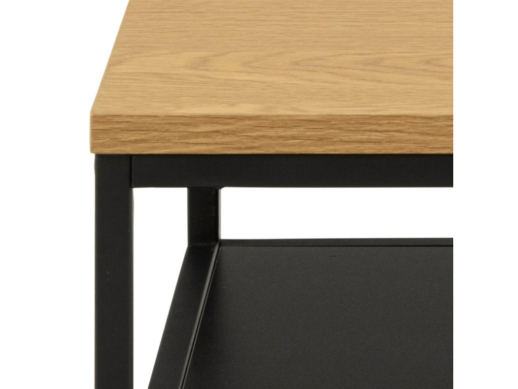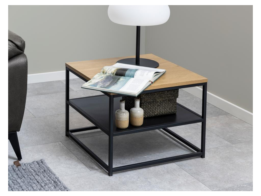 Kompaktné rozmery, praktický odkladací priestor a kontrast medzi prírodným dekorom duba a čiernym kovom robia z konferenčného stolíka Gilas ideálny doplnok do každého moderného bývania.