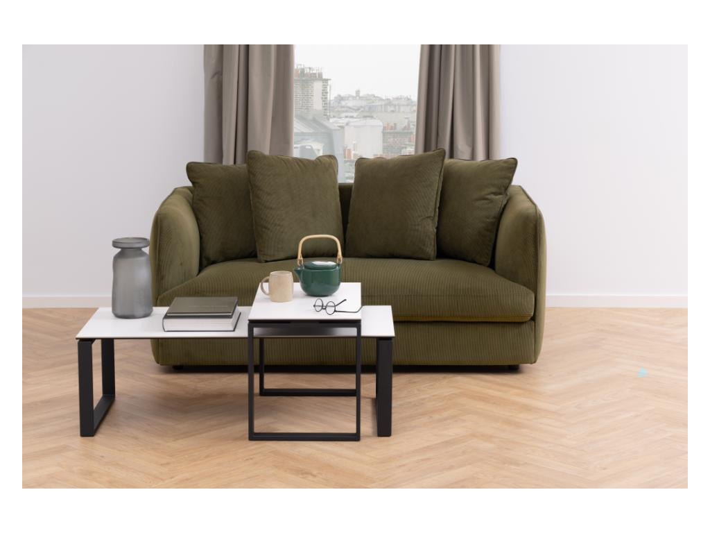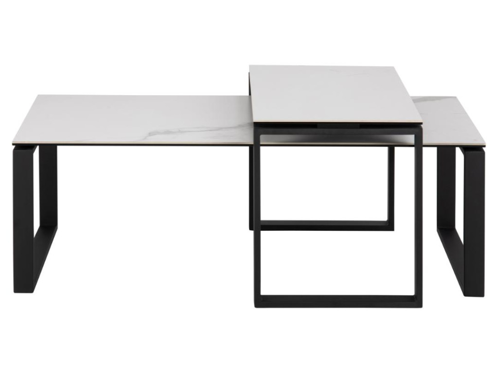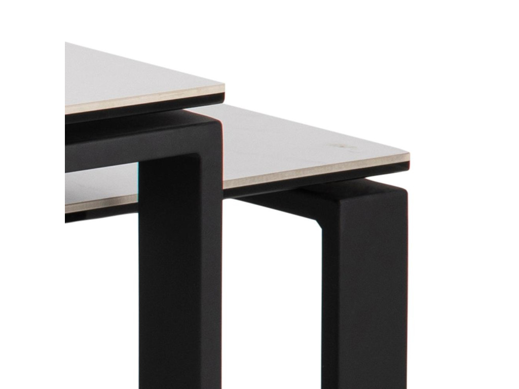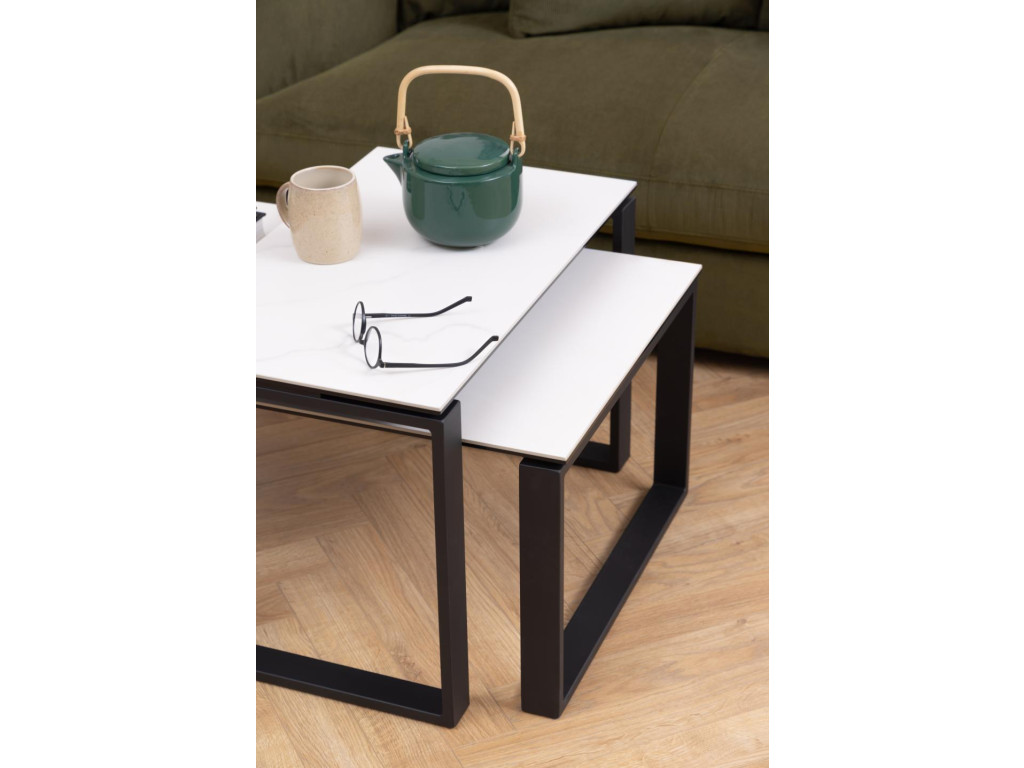 Súprava stolíkov Katrine v bielej keramike a čiernej oceli vyniká minimalistickým dizajnom a vysokou praktickosťou. Dva rôzne rozmery poskytujú flexibilitu pri usporiadaní priestoru. Ich odolný materiál zaručuje dlhú životnosť, zatiaľ čo kombinácia farieb dodá priestoru moderný nádych.