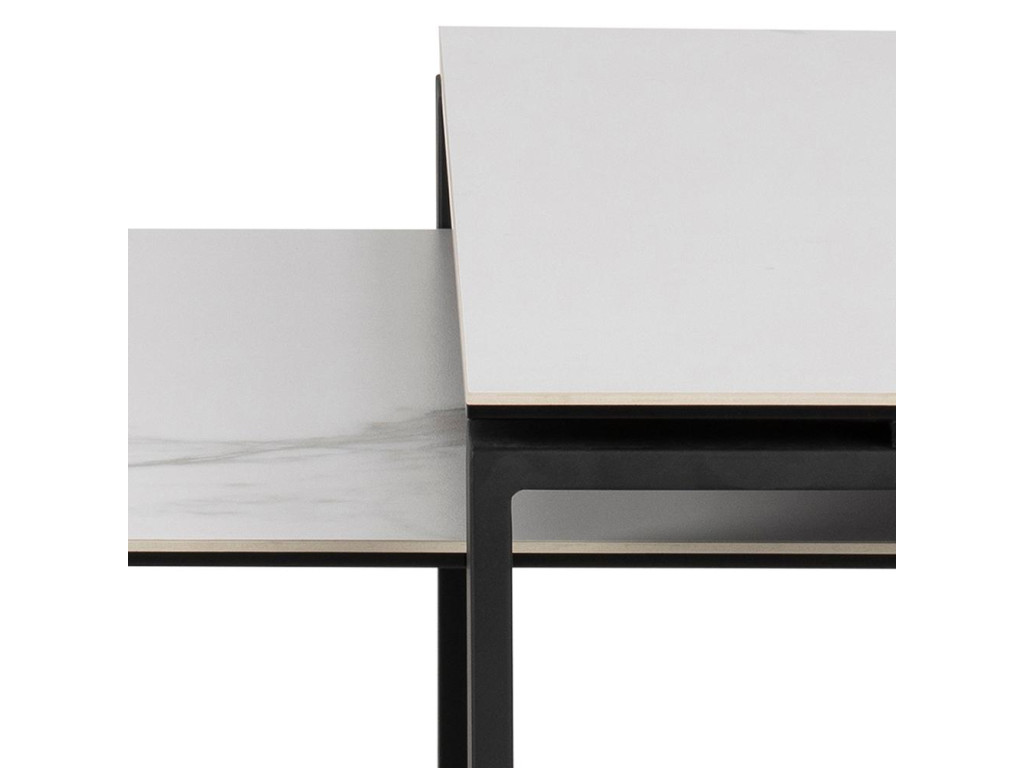 Ak hľadáte stolík, ktorý pôsobí ľahko, ale zároveň sofistikovane, táto verzia so svetlou keramickou doskou Akranes bude tým pravým. V kontraste s podnožou z matnej čiernej ocele vytvára nadčasový a čistý vzhľad vhodný do každého interiéru.