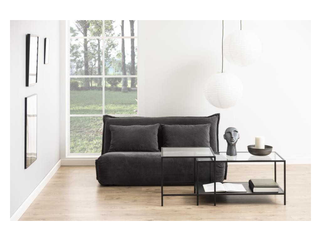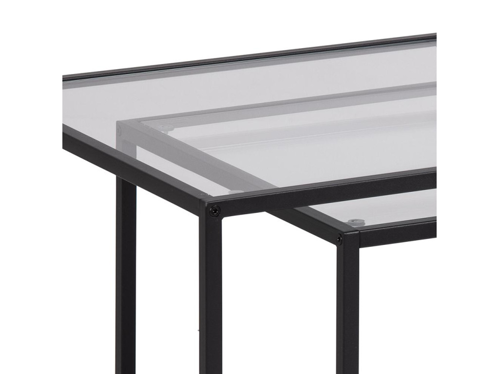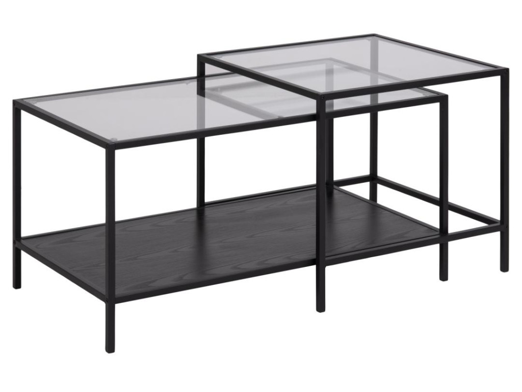 Set Seaford v kombinácii číreho skla a čiernej ocele ponúka moderné a elegantné riešenie do každého interiéru. Dva rozdielne rozmery umožňujú viacero spôsobov usporiadania, a tým vytvárajú vizuálne zaujímavý prvok obývačky.